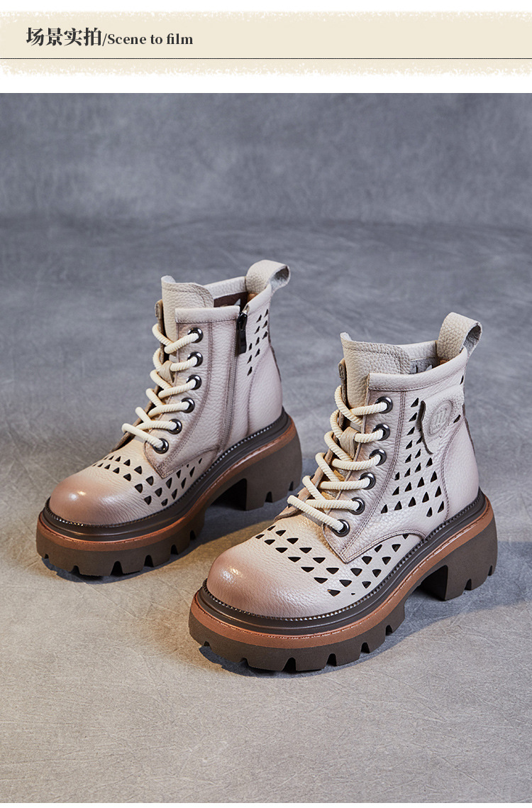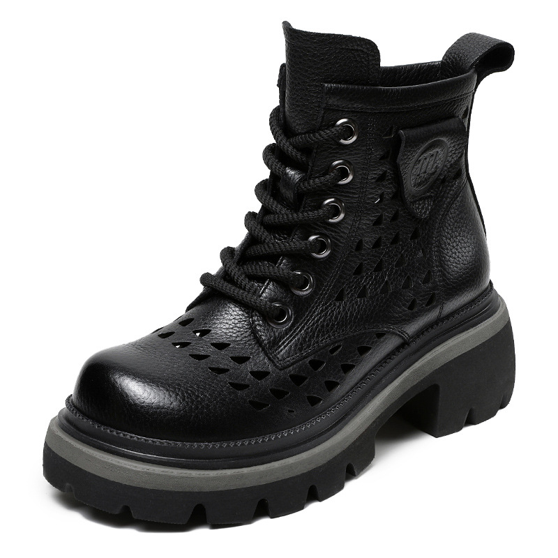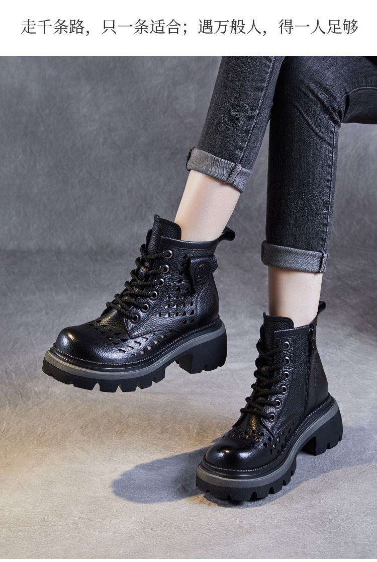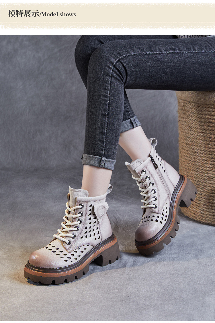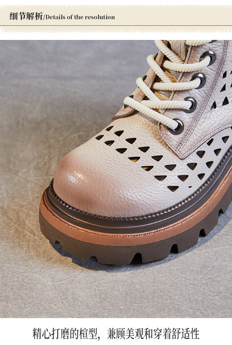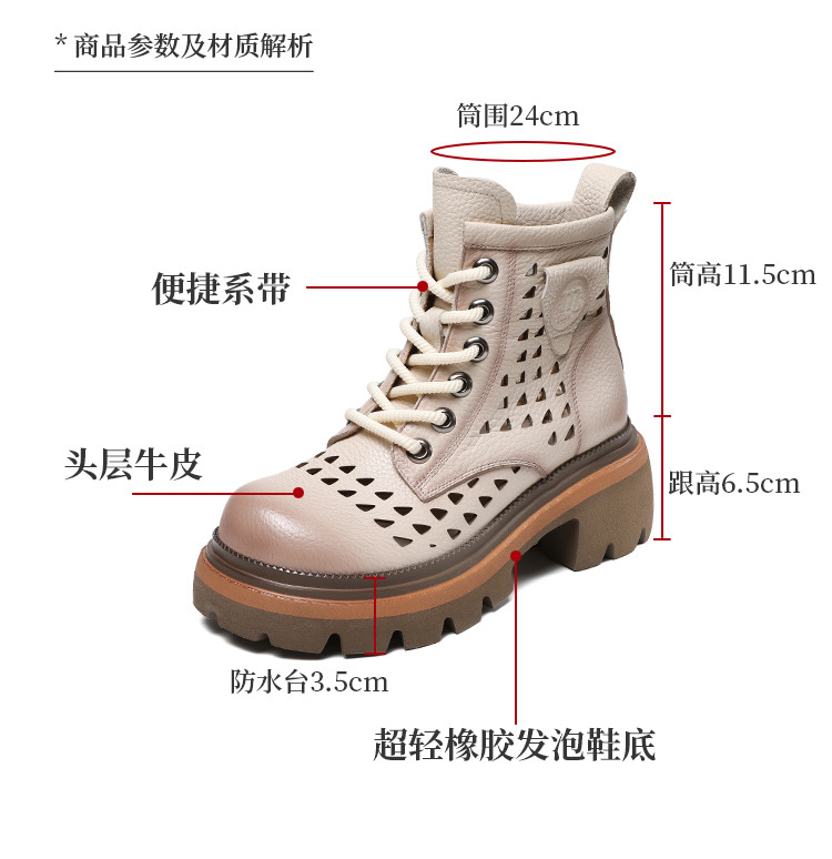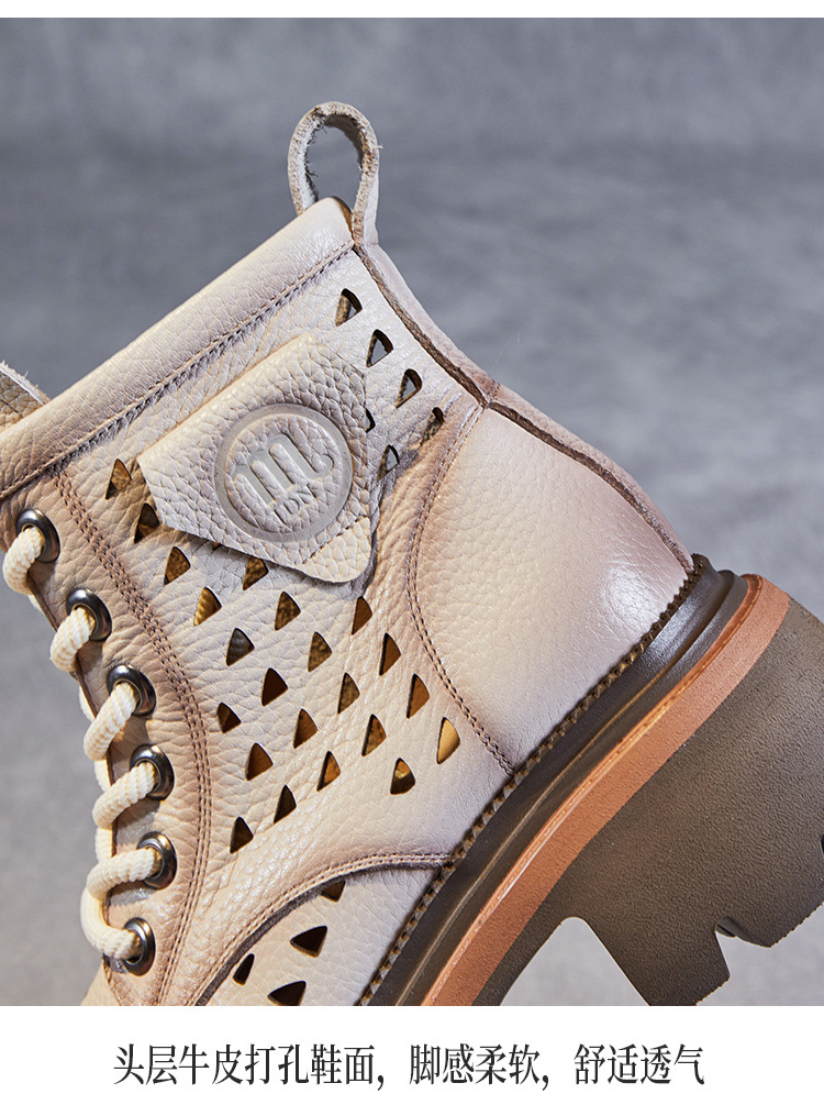 첫 번째 레이어 Cowhide 샌들 여성 봄과 여름 복고풍 영국 두꺼운 바닥 얇은 중공 마틴 부츠 정품 가죽 통기성 홀 부츠