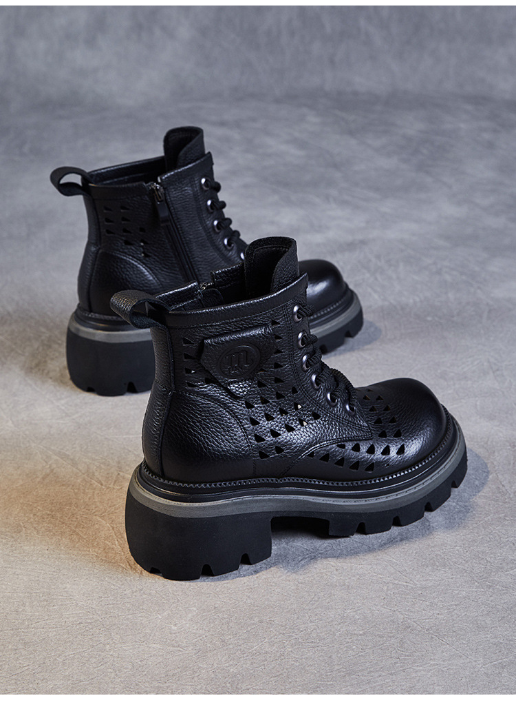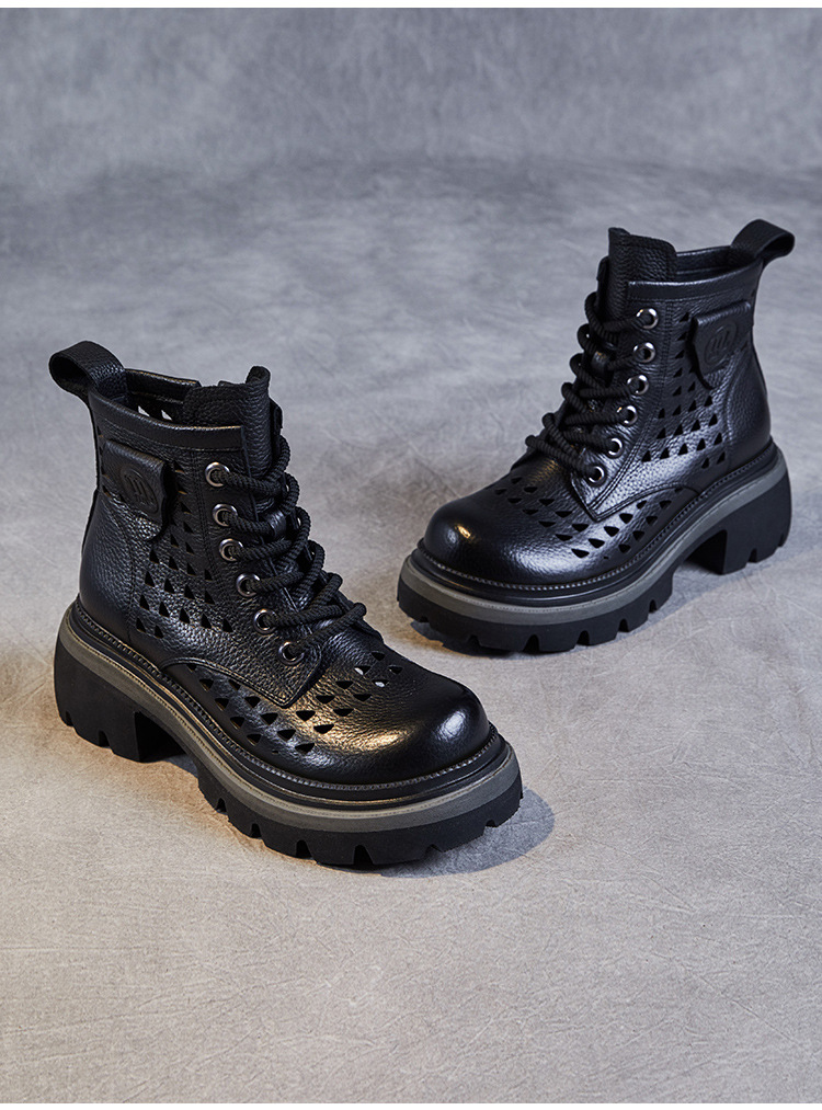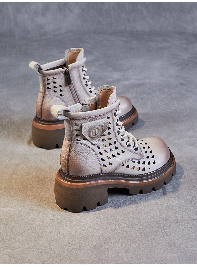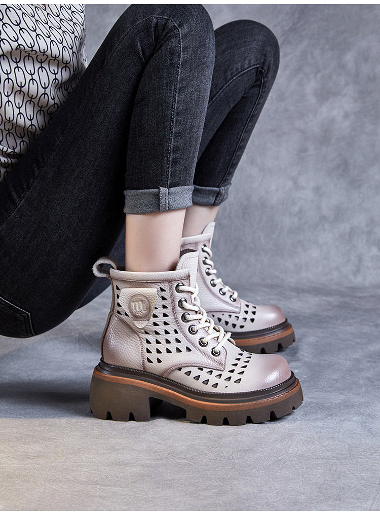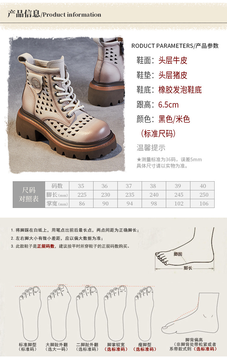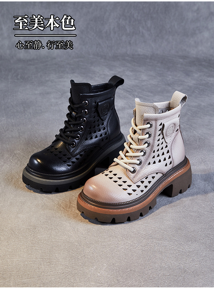 첫 번째 레이어 Cowhide 샌들 여성 봄과 여름 복고풍 영국 두꺼운 바닥 얇은 중공 마틴 부츠 정품 가죽 통기성 홀 부츠