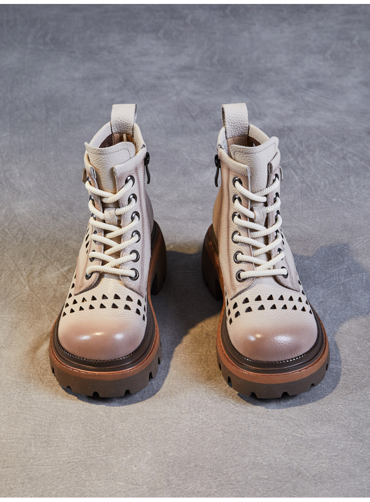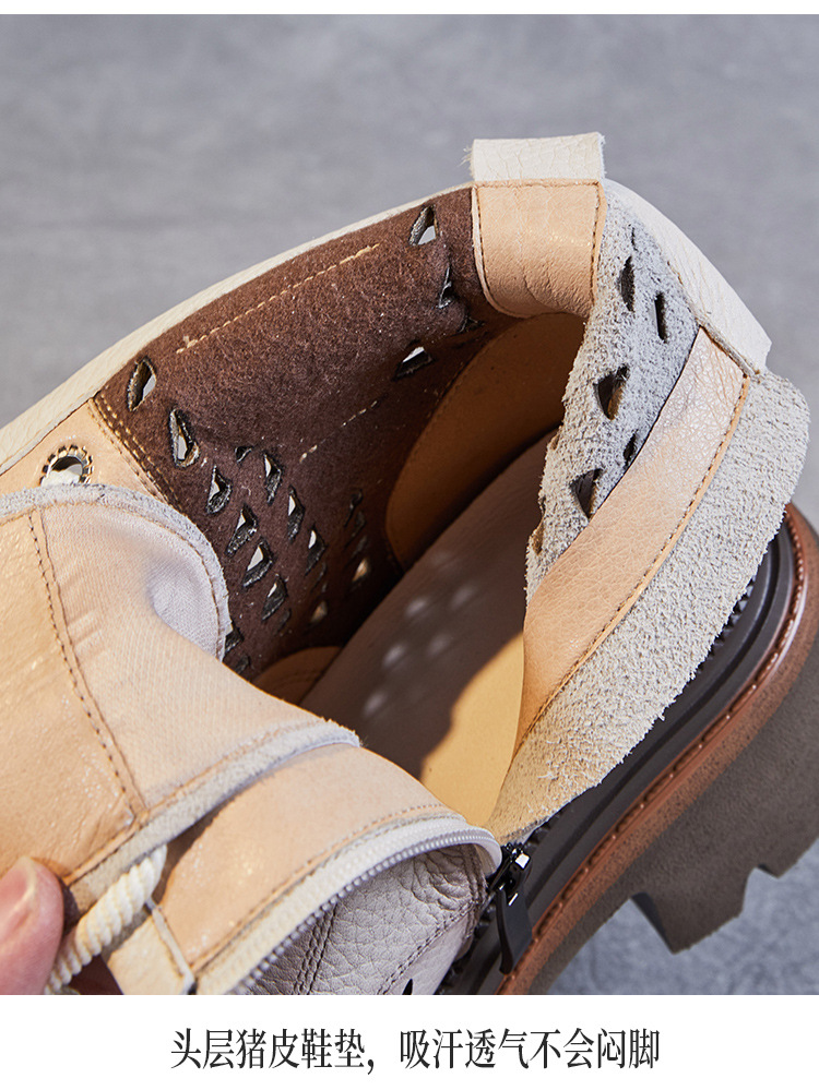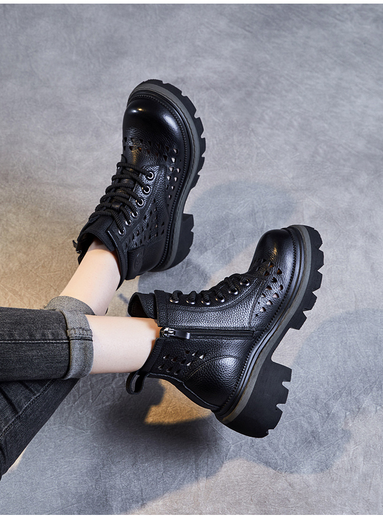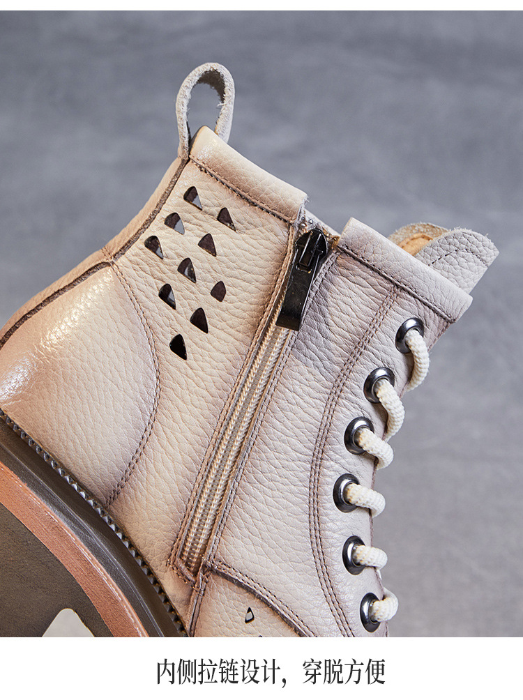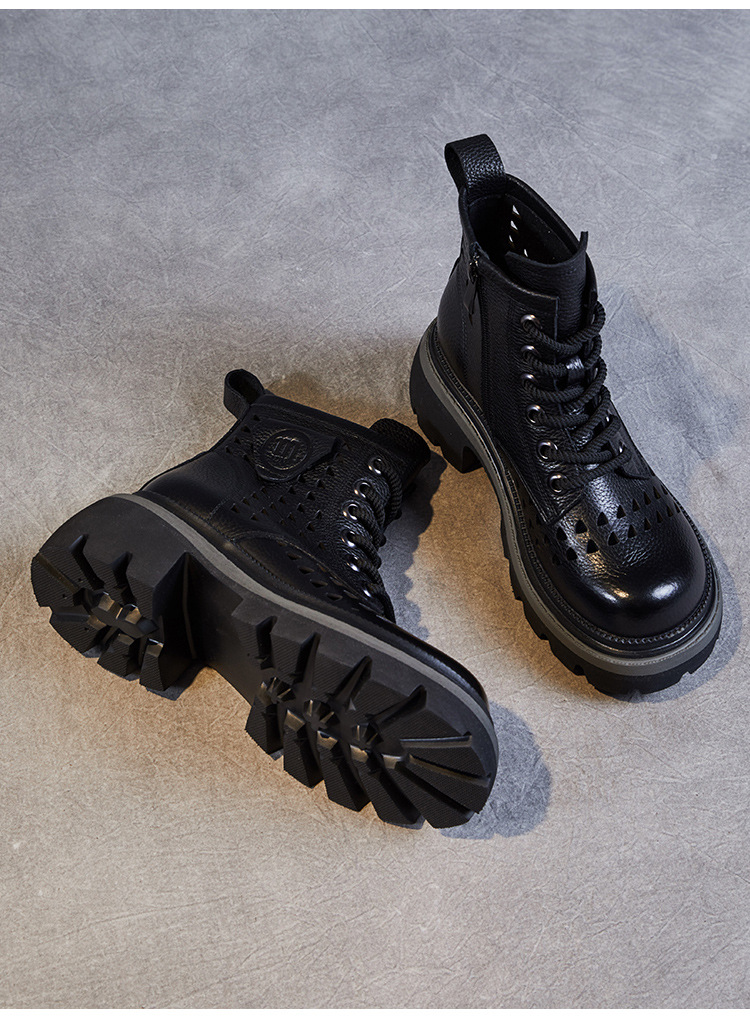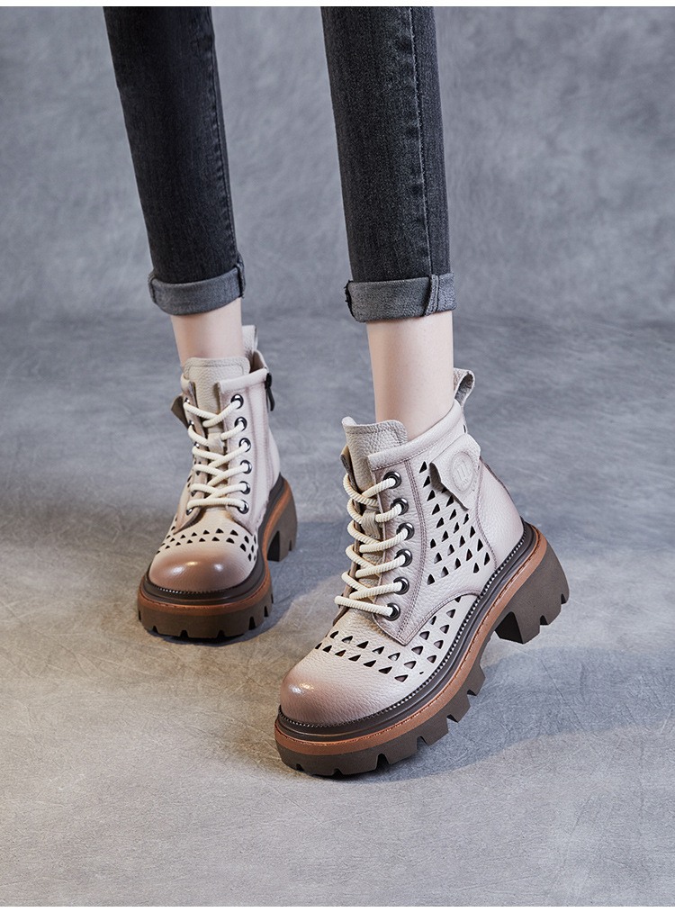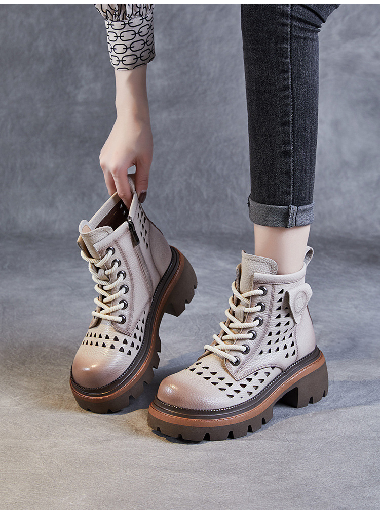 첫 번째 레이어 Cowhide 샌들 여성 봄과 여름 복고풍 영국 두꺼운 바닥 얇은 중공 마틴 부츠 정품 가죽 통기성 홀 부츠