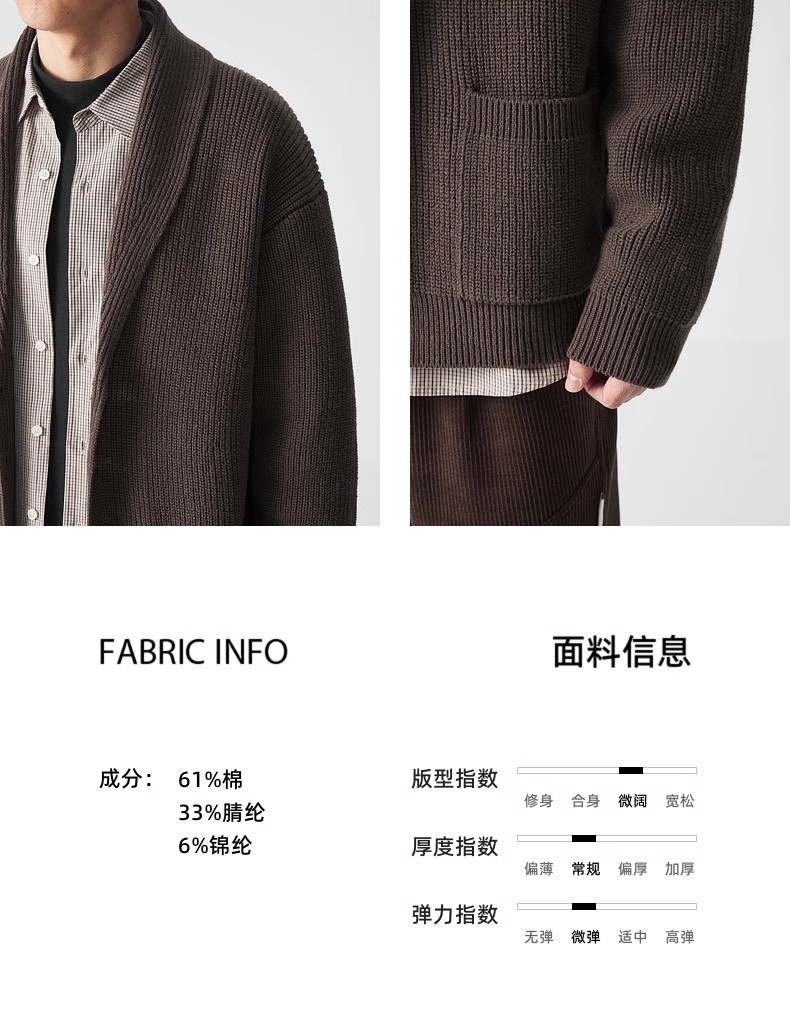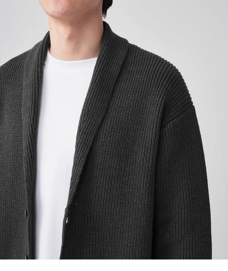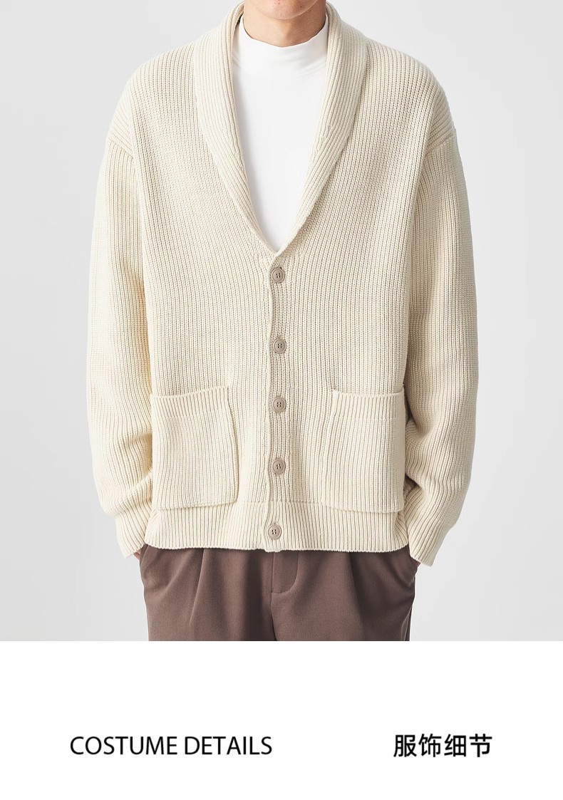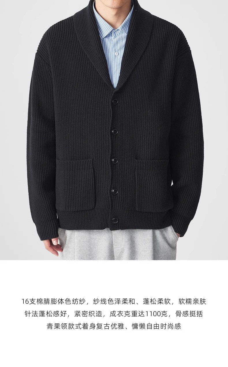 모마이크 심플 그린 과일 칼라 니트 가디건 남성용 2025 가을 신상품 대칭 포켓 남성 스웨터 20462스토어 가기