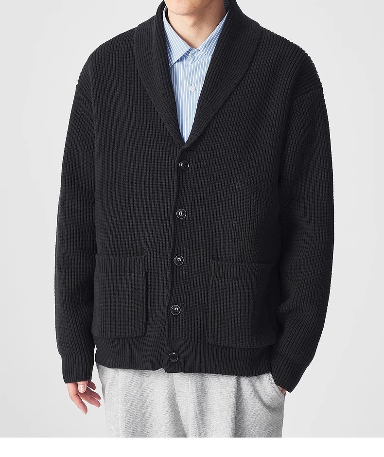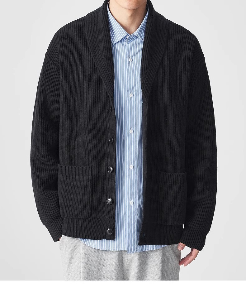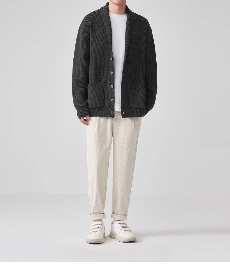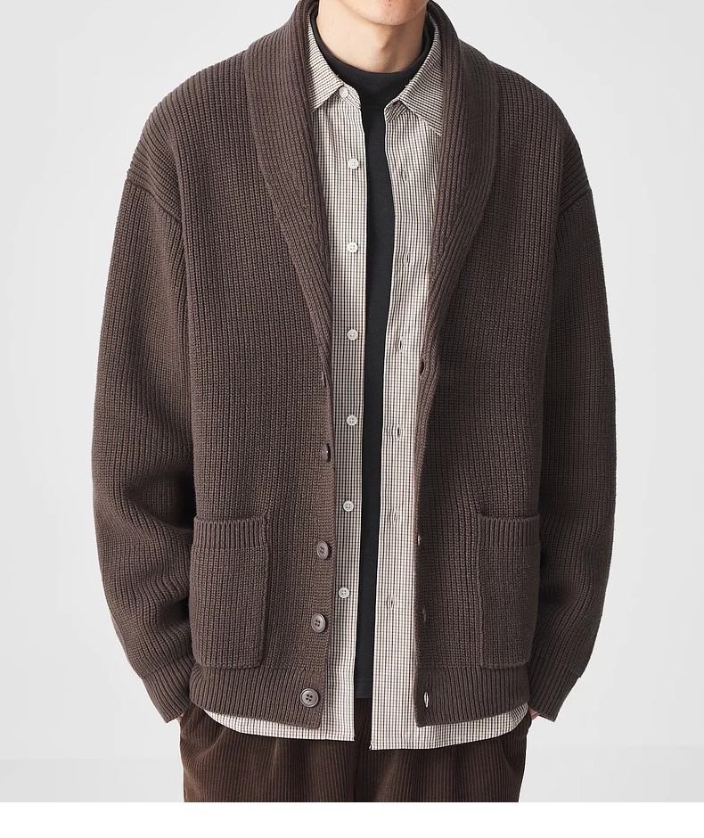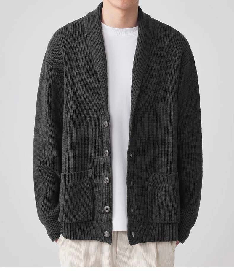 모마이크 심플 그린 과일 칼라 니트 가디건 남성용 2025 가을 신상품 대칭 포켓 남성 스웨터 20462