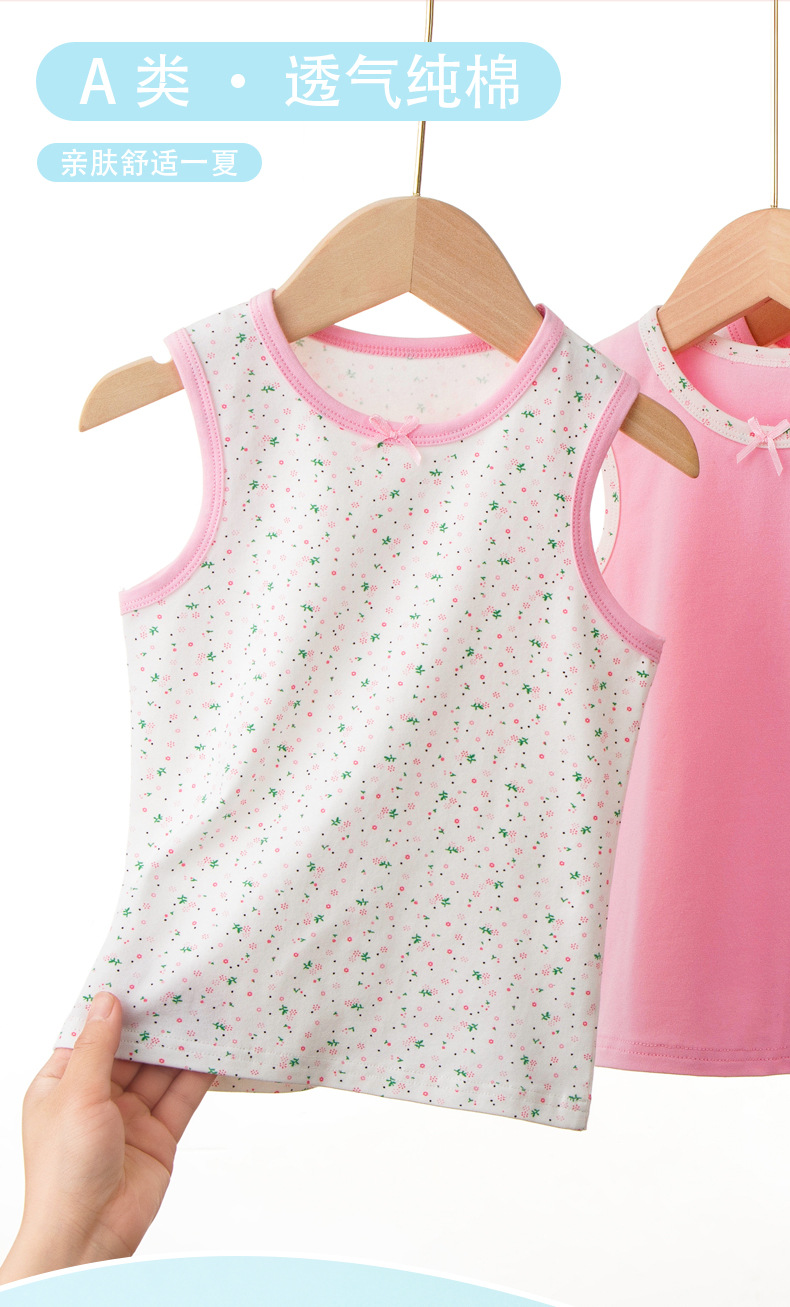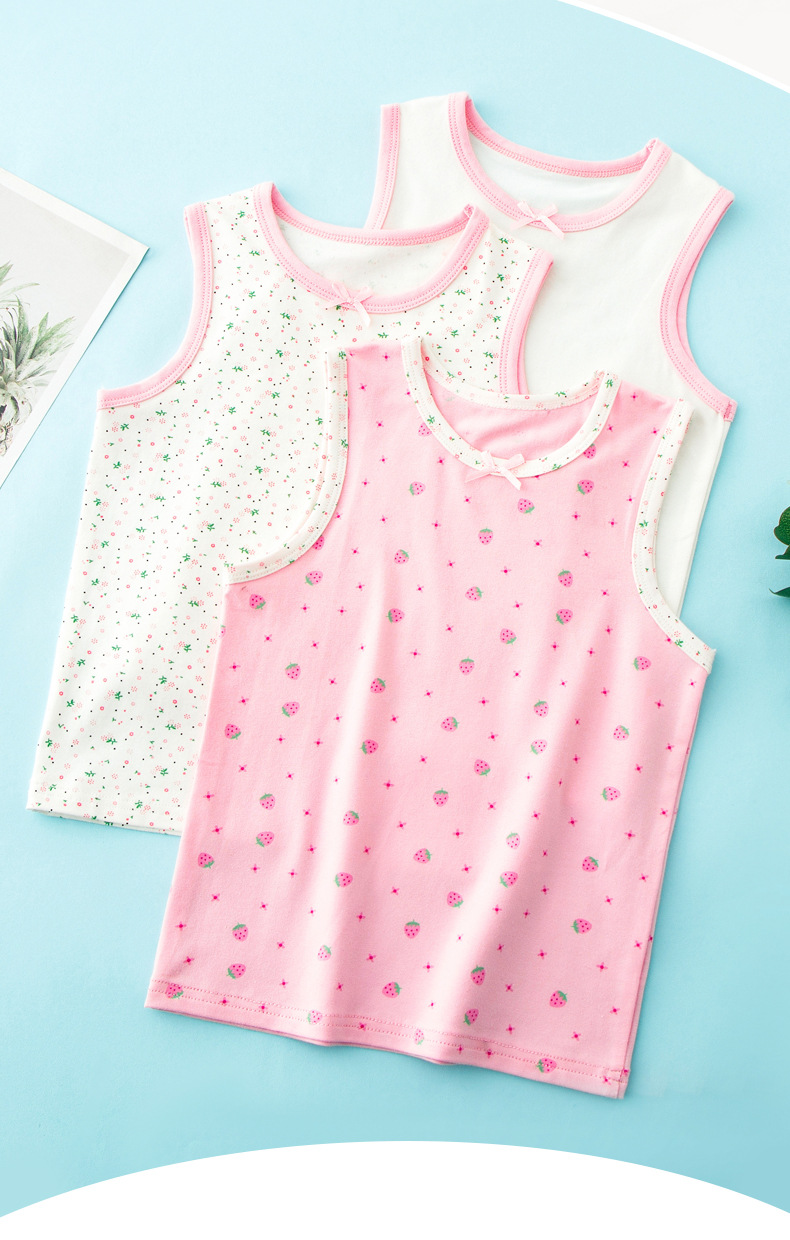 여름 조끼 순수한면 소녀 조끼 아기 캐미솔 바닥 어린이 딸기 레이스 민소매 속옷 클래스 A스토어 가기