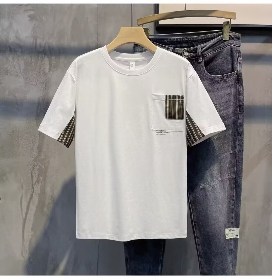 대외 무역 한국 스타일 유행 포켓 대비 색상 디자인 느슨한 반팔 티셔츠 2024 여름 새 티셔츠 바닥스토어 가기