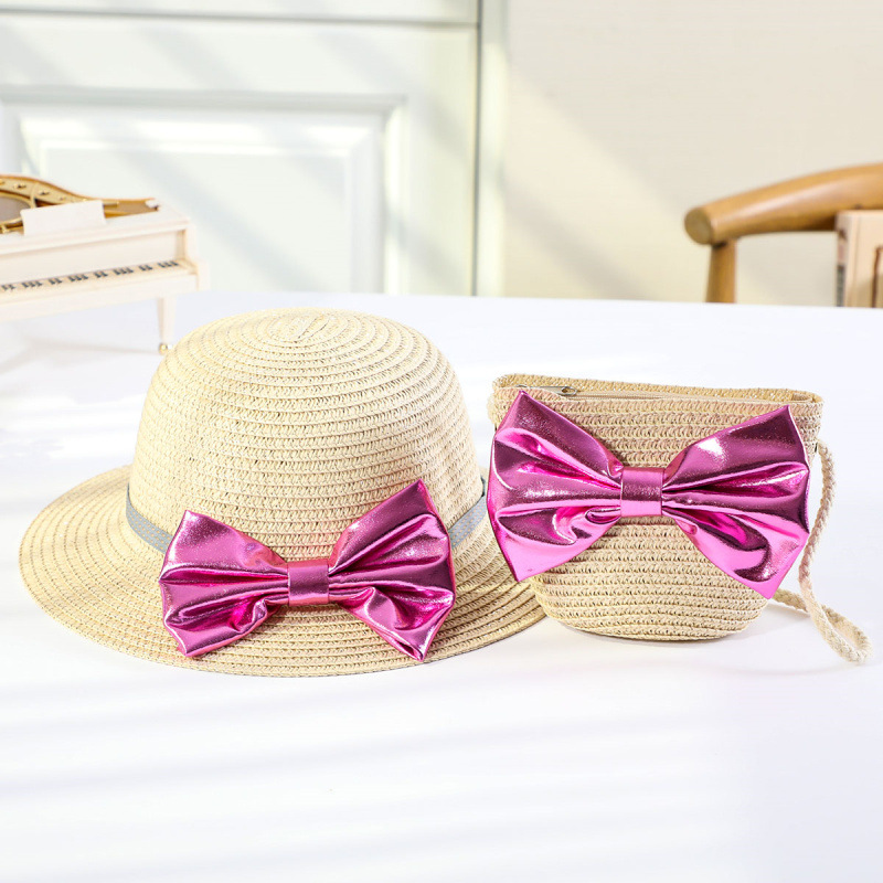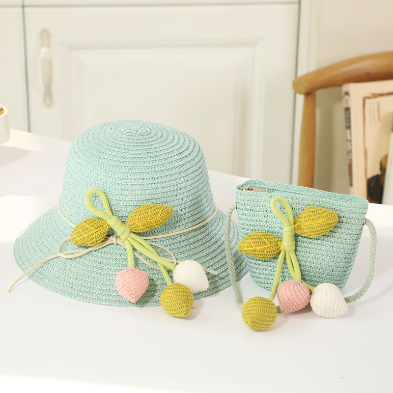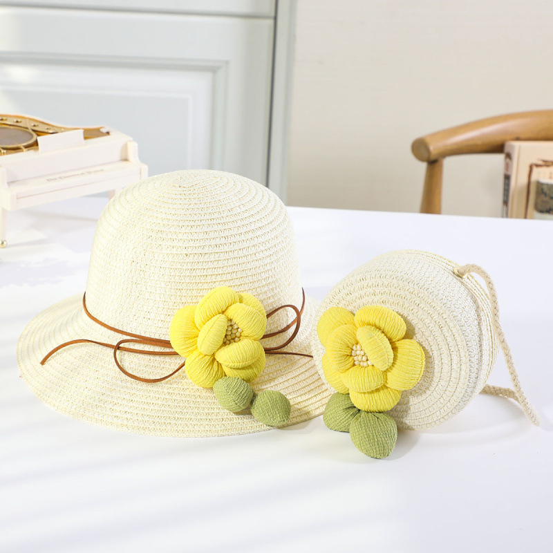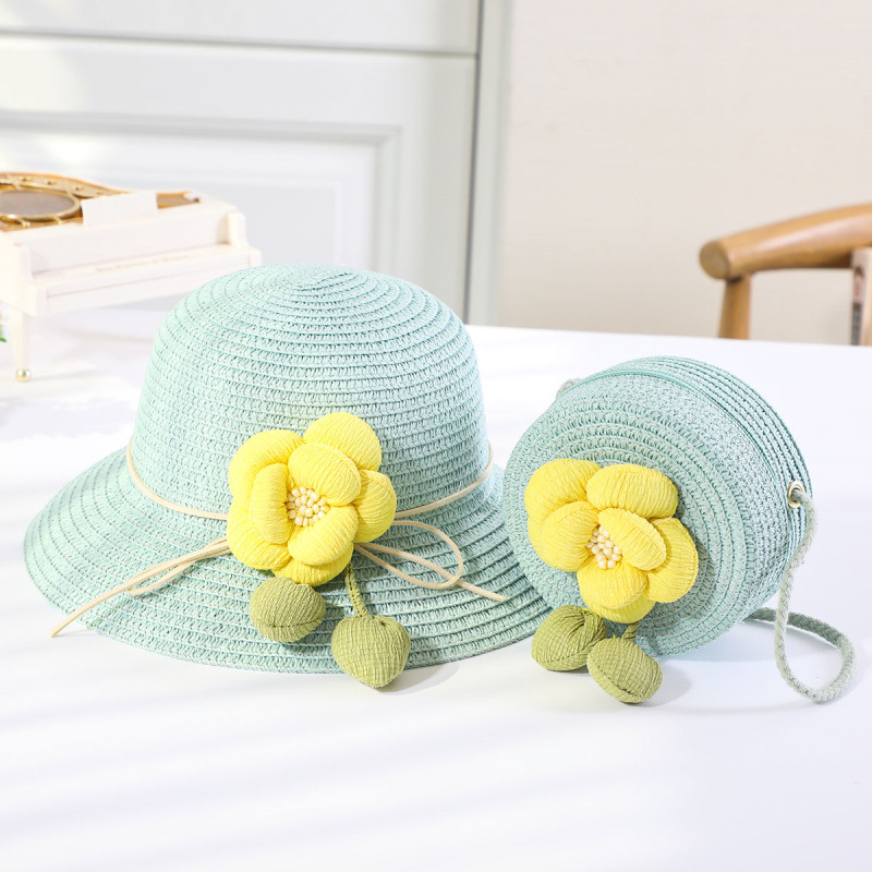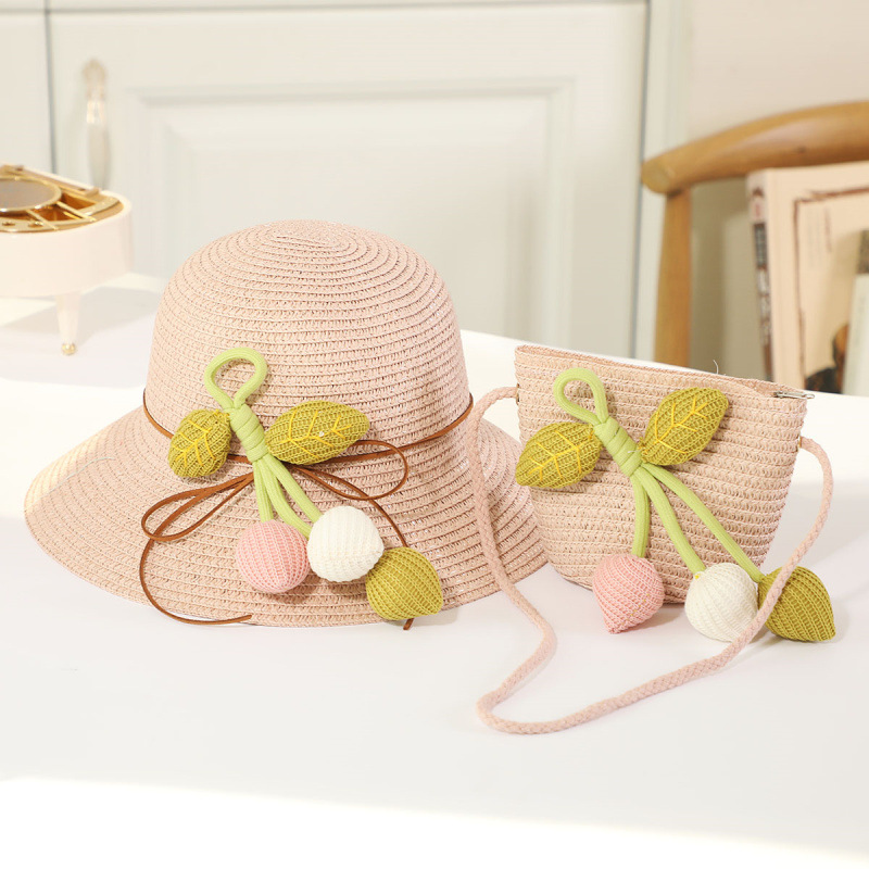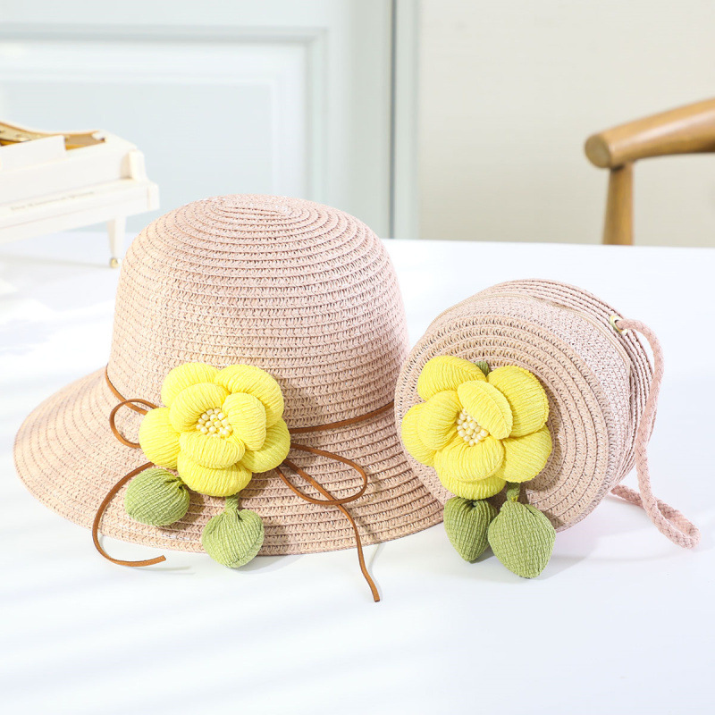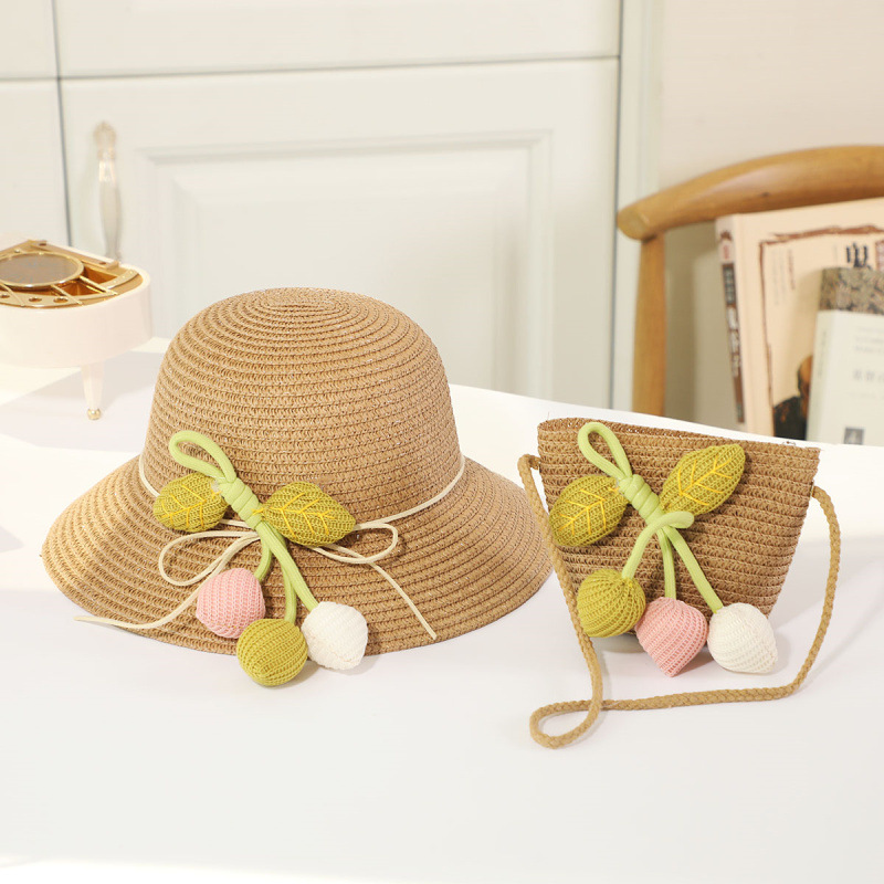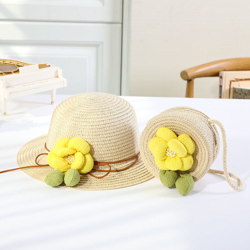 인터넷 유명 인사 여름 태양 보호 해변 밀짚 모자 어린이 크로스 바디 동전 지갑 태양 보호 밀짚 모자 + 가방 세트 국경 배달스토어 가기