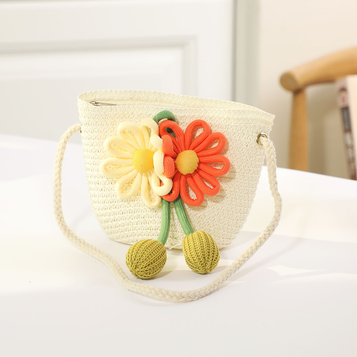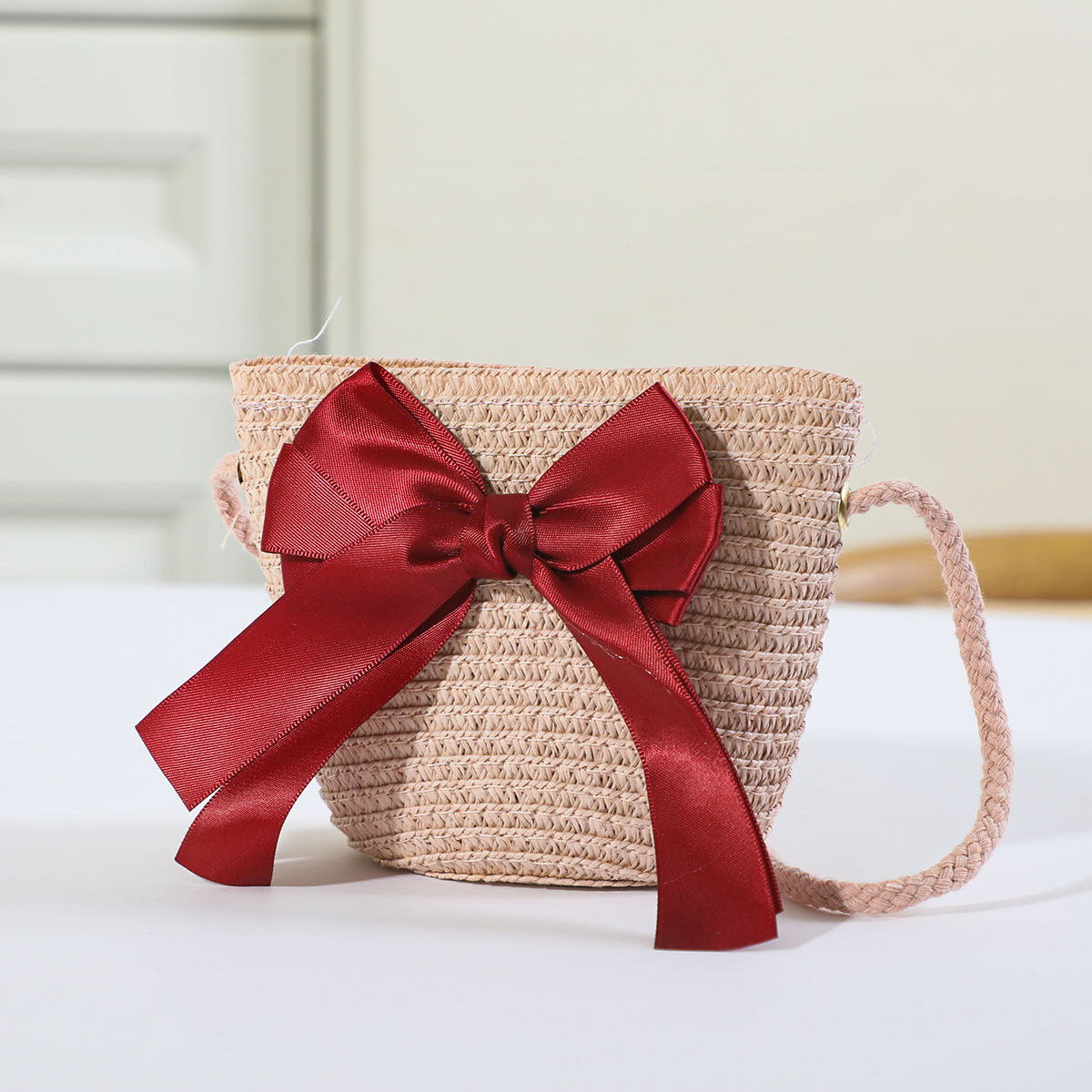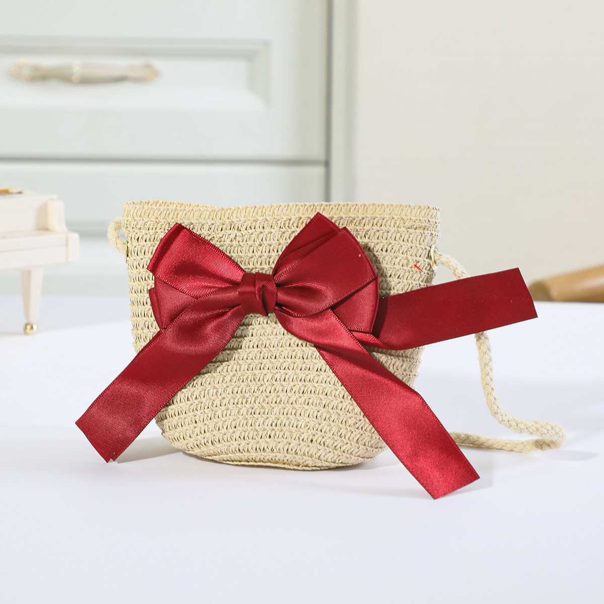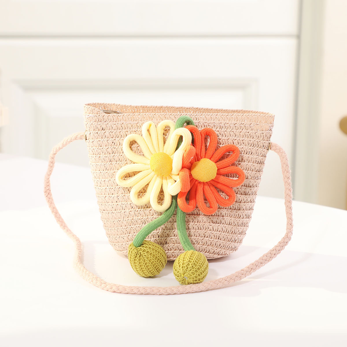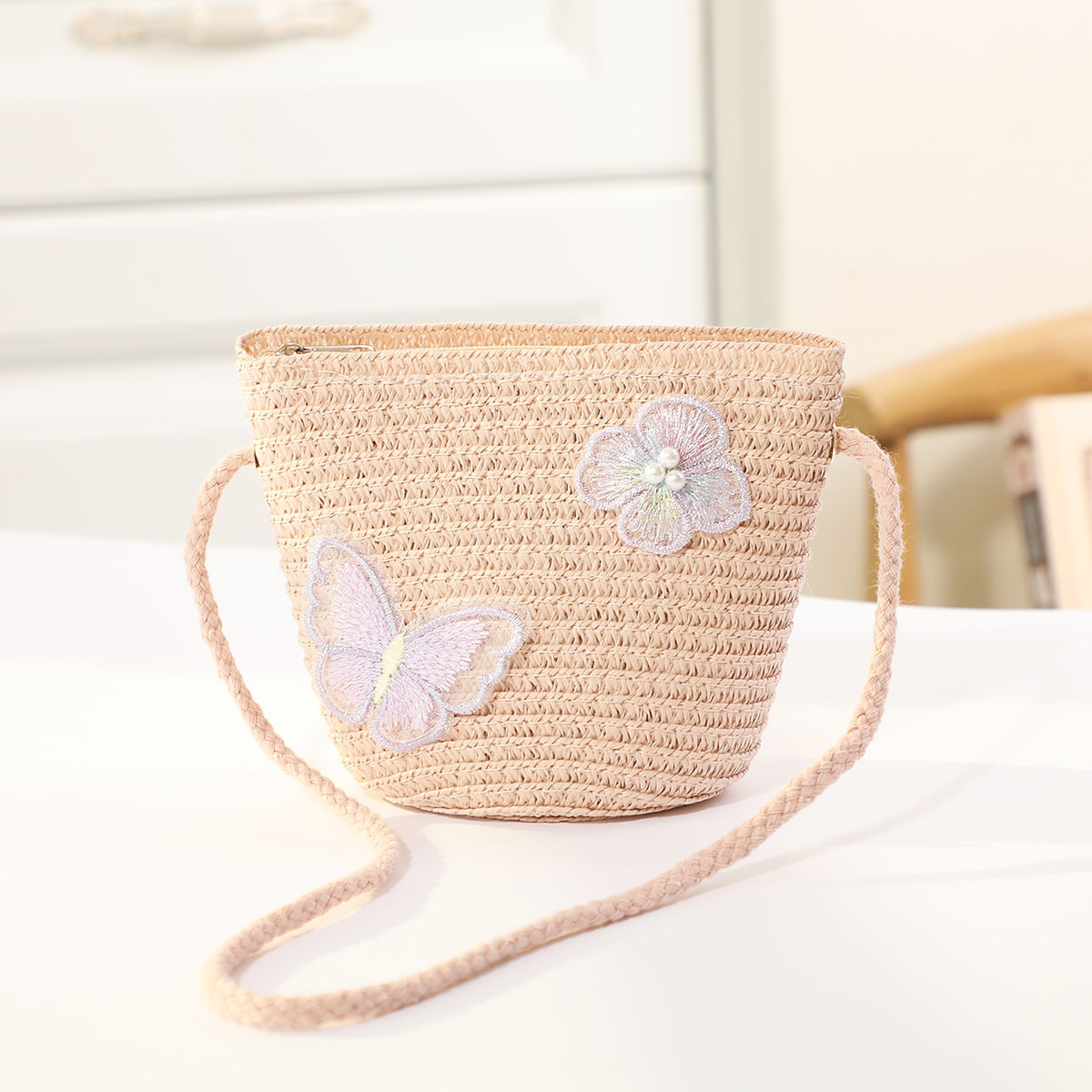 인터넷 유명 인사 여름 태양 보호 해변 밀짚 모자 어린이 크로스 바디 동전 지갑 태양 보호 밀짚 모자 + 가방 세트 국경 배달스토어 가기