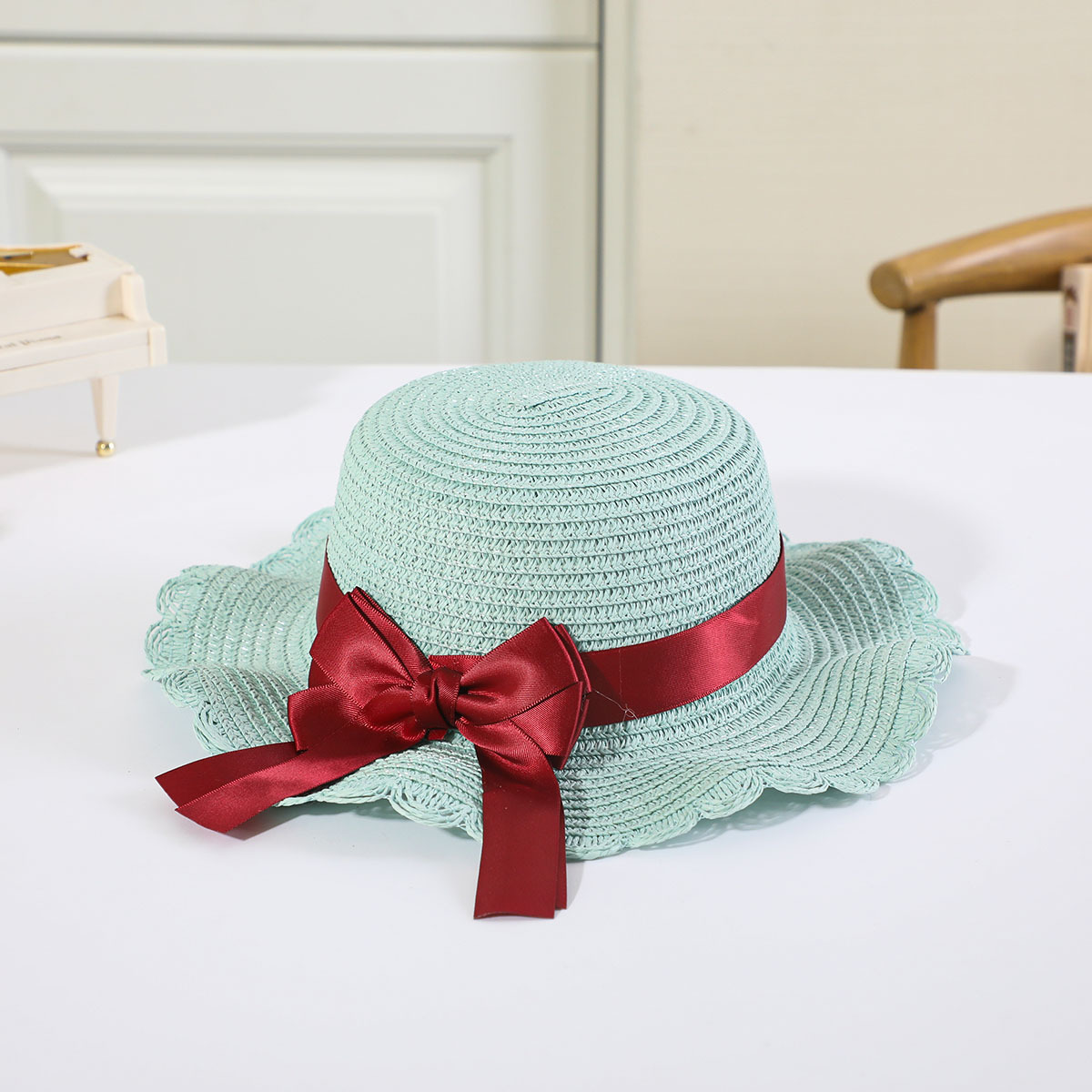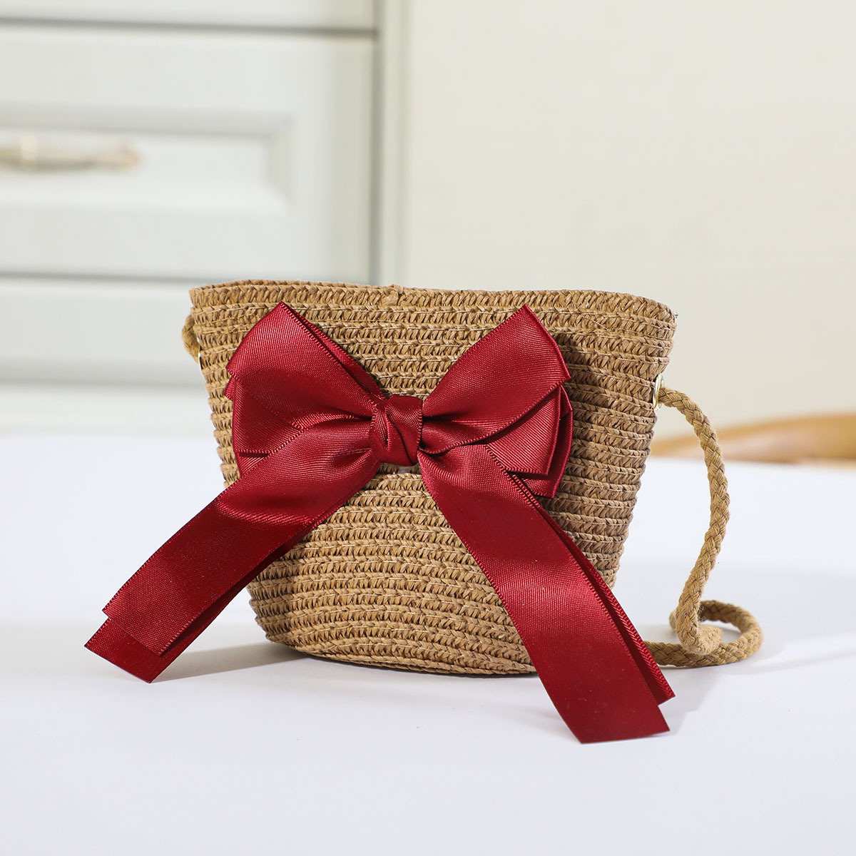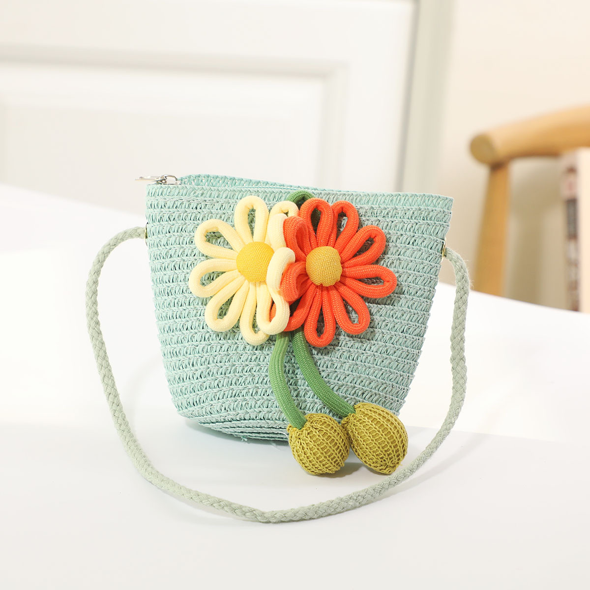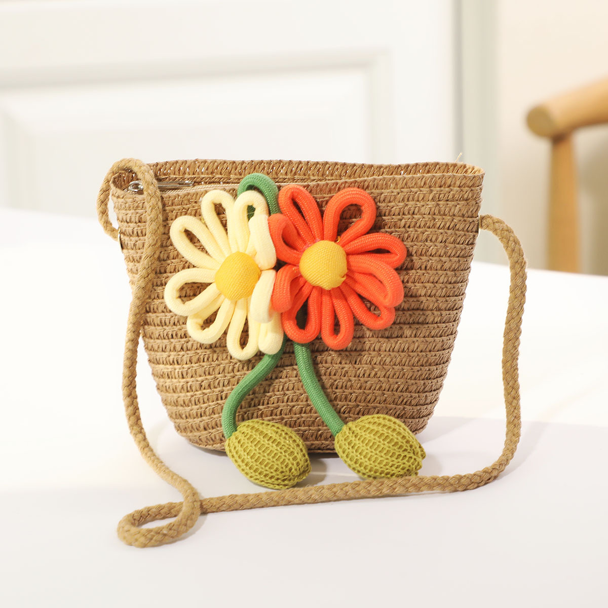 인터넷 유명 인사 여름 태양 보호 해변 밀짚 모자 어린이 크로스 바디 동전 지갑 태양 보호 밀짚 모자 + 가방 세트 국경 배달스토어 가기