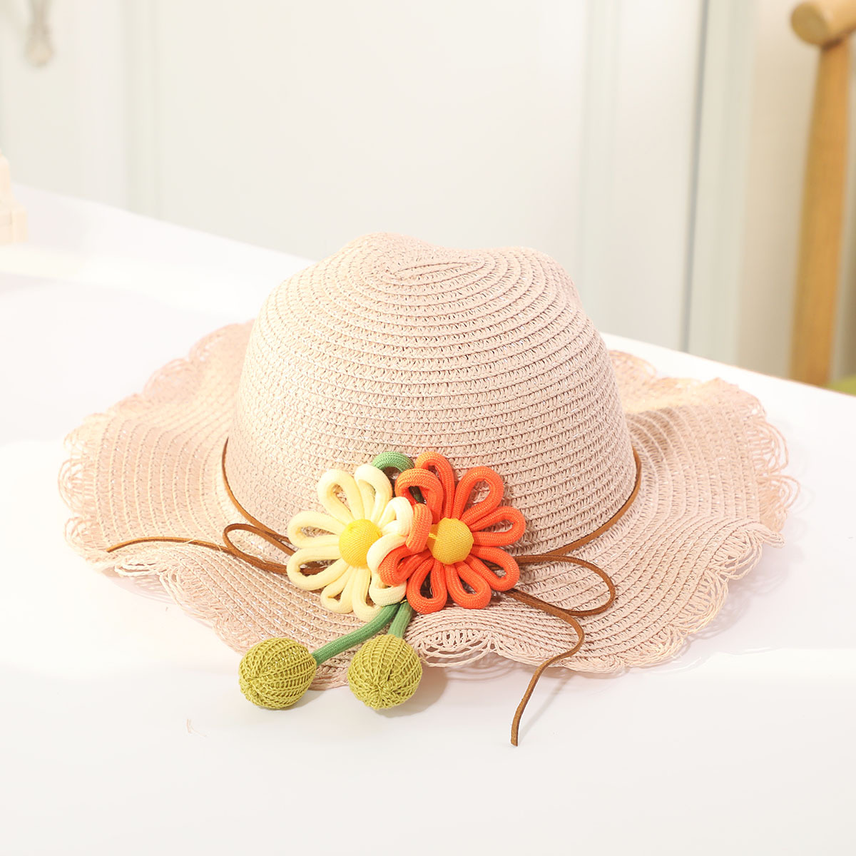 • 노란 꽃 냄비 캡 핑크