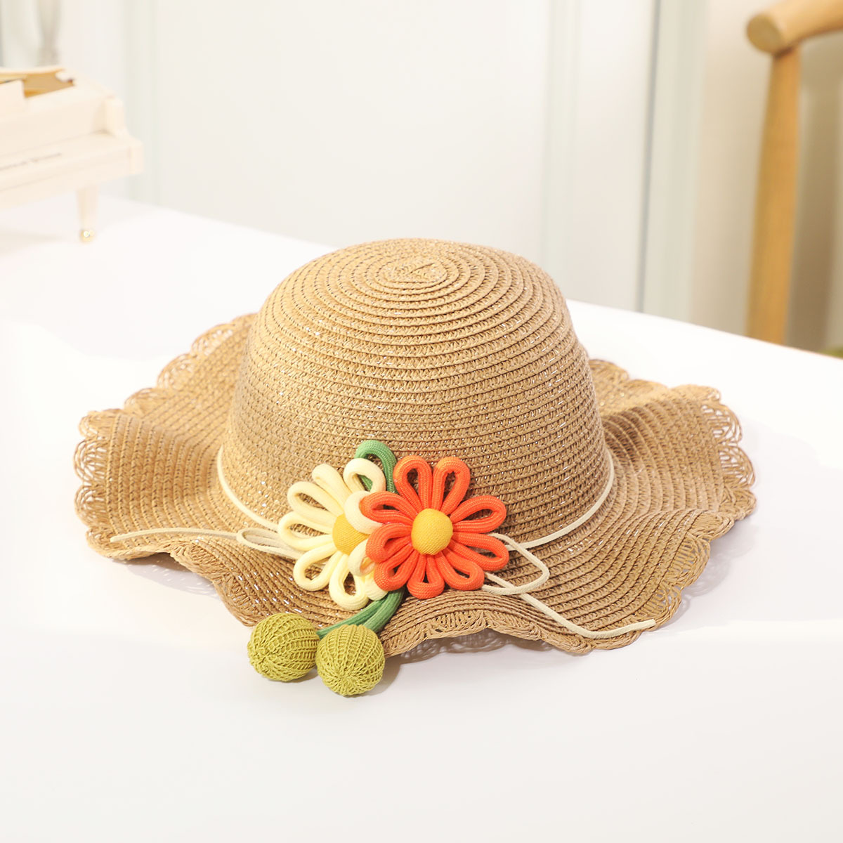• 노란색 꽃 냄비 캡 베이지
