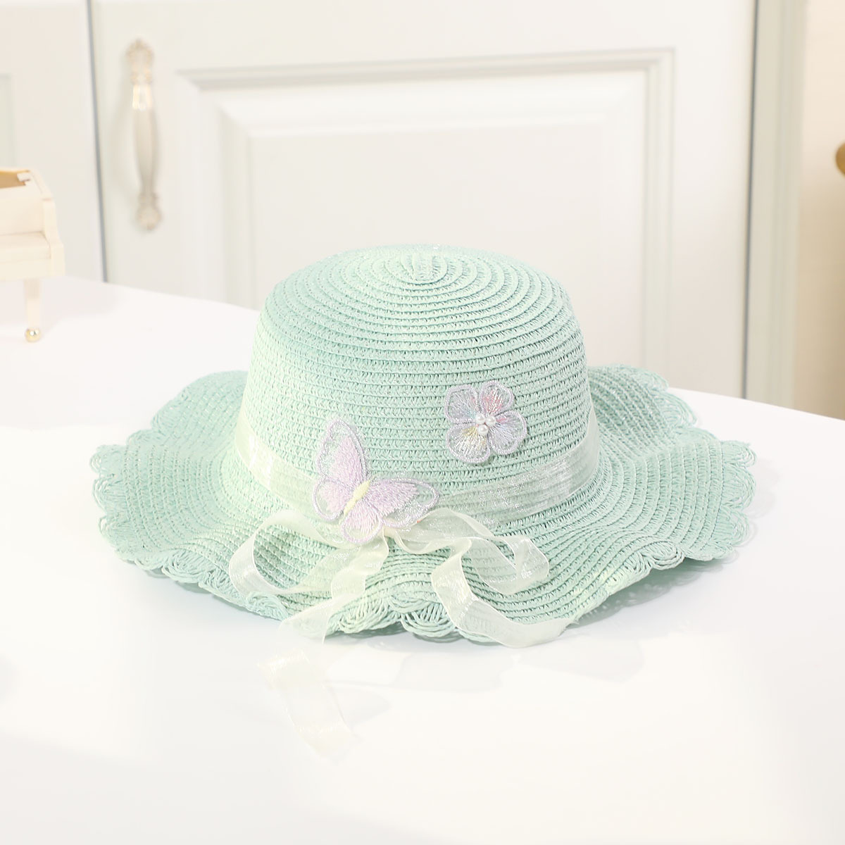 • 진주 검은 나비 분지 모자 녹색