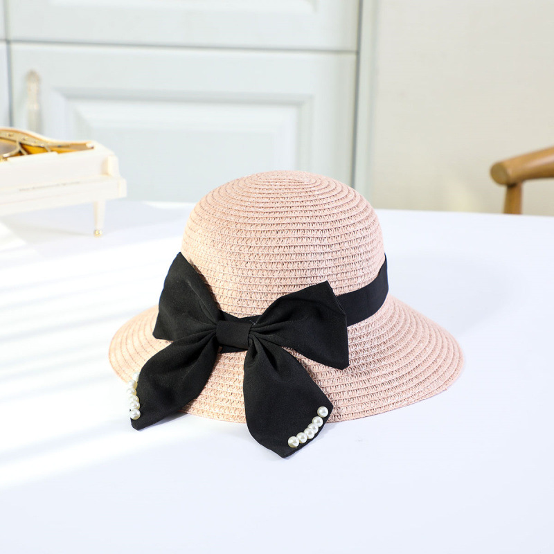 • 진주 검은 나비 분지 모자 핑크