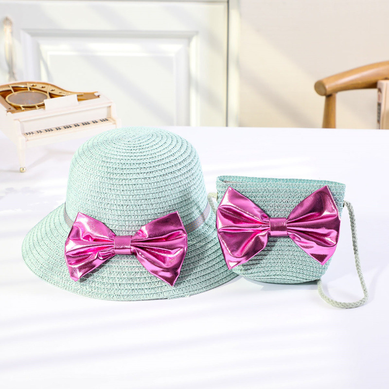 인터넷 유명 인사 여름 태양 보호 해변 밀짚 모자 어린이 크로스 바디 동전 지갑 태양 보호 밀짚 모자 + 가방 세트 국경 배달