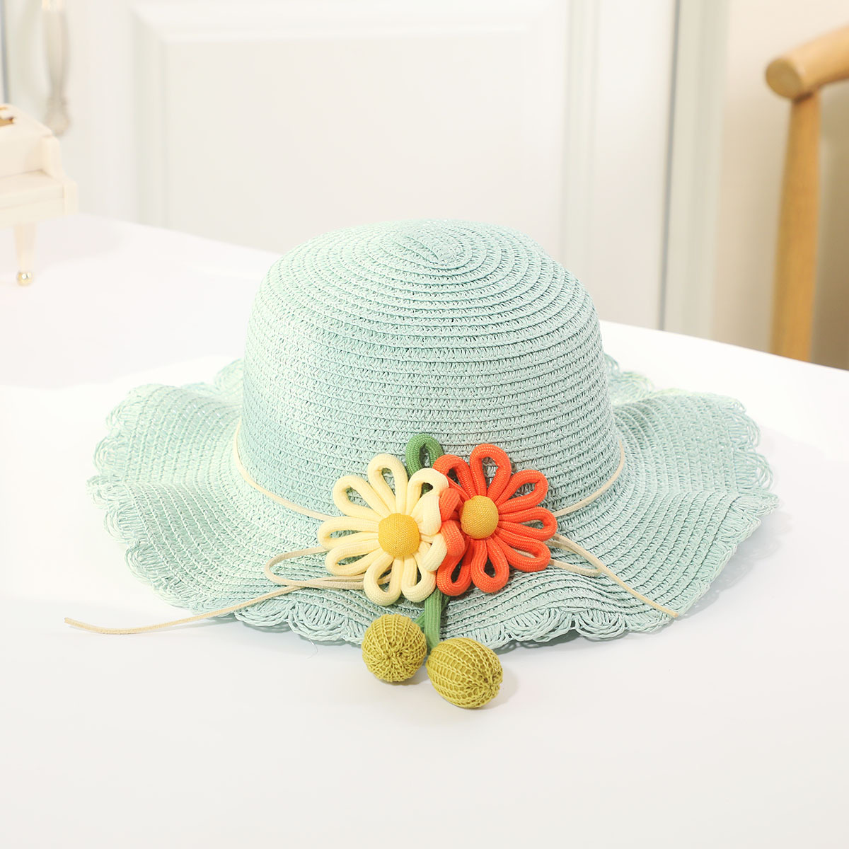 • 노란색 꽃 냄비 모자 녹색