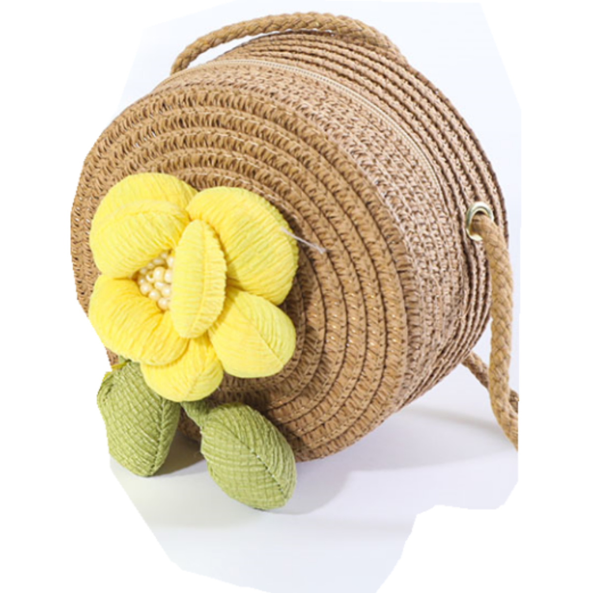 • 노란 꽃 작은 둥근 가방 핑크