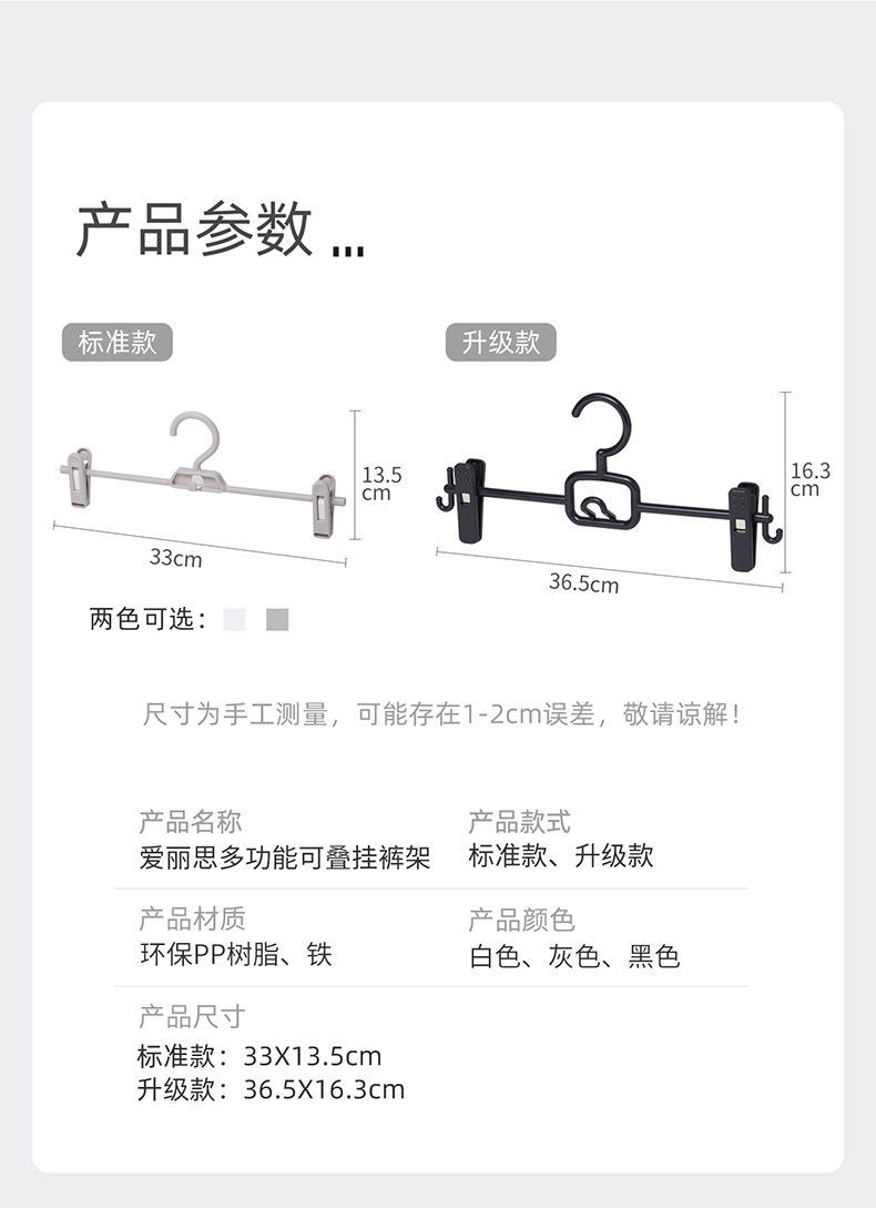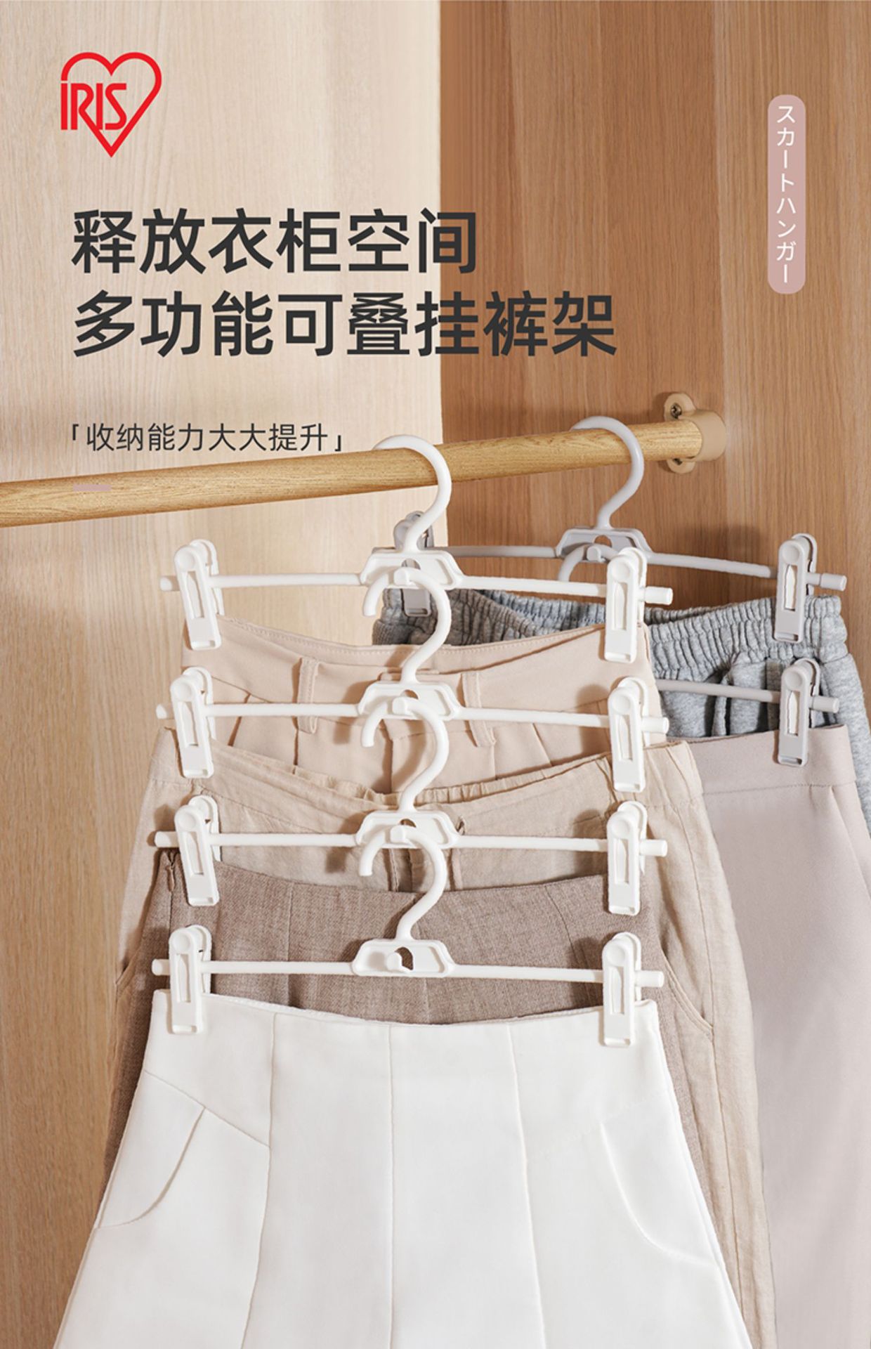 아이리스 원활한 다기능 바지 랙 가정용 옷장 내장 클립 스커트 랙 건조 미끄럼 방지 랙 걸이 바지 걸이