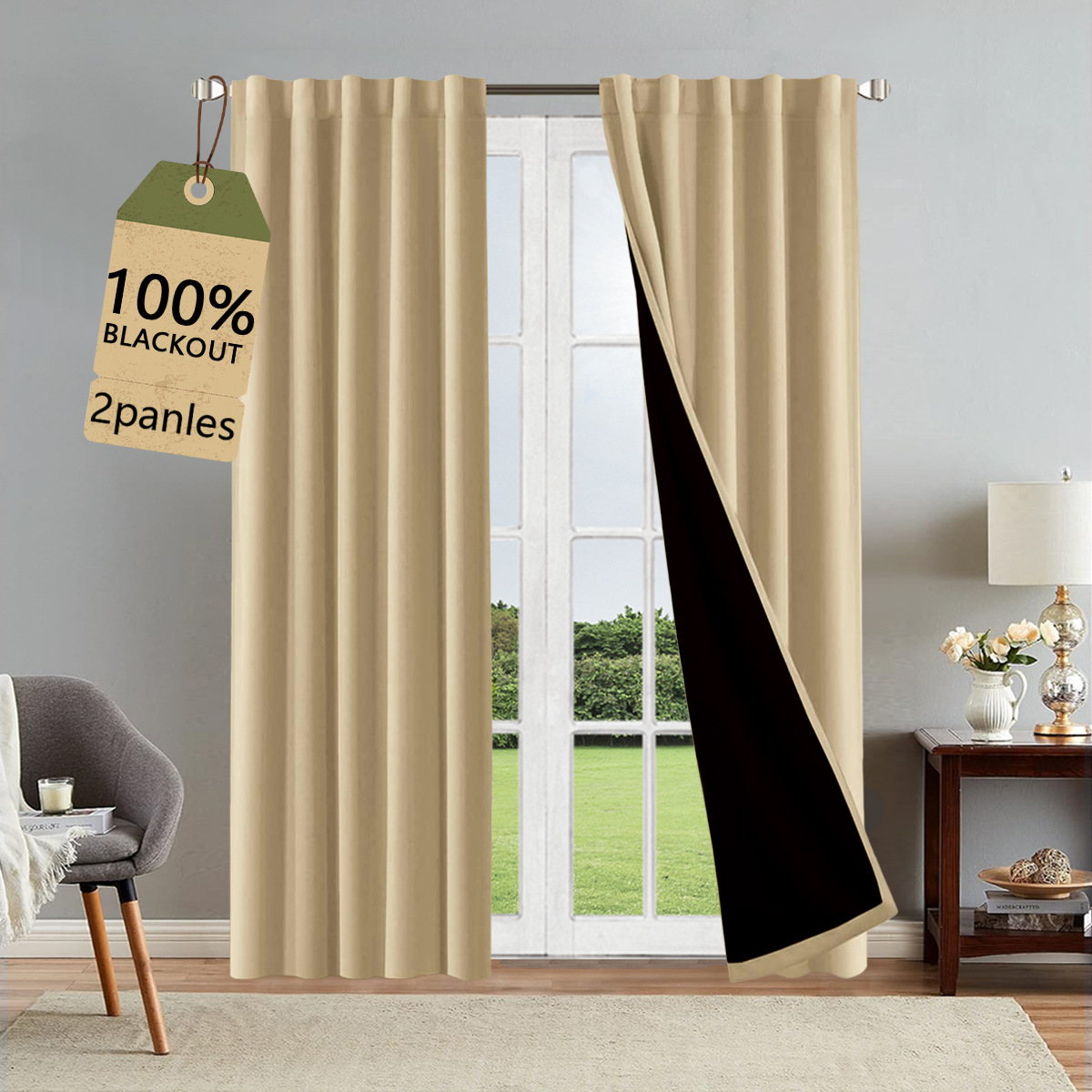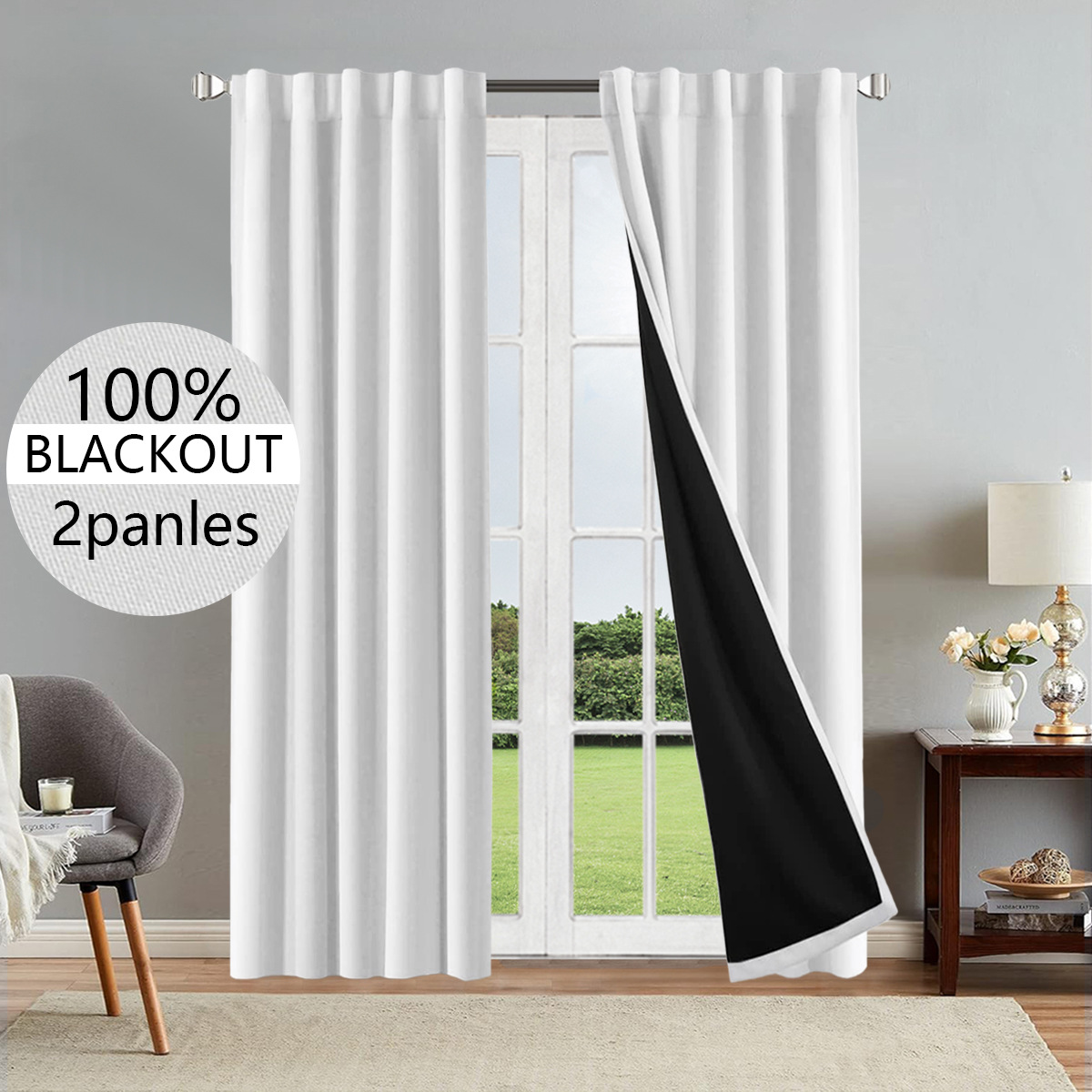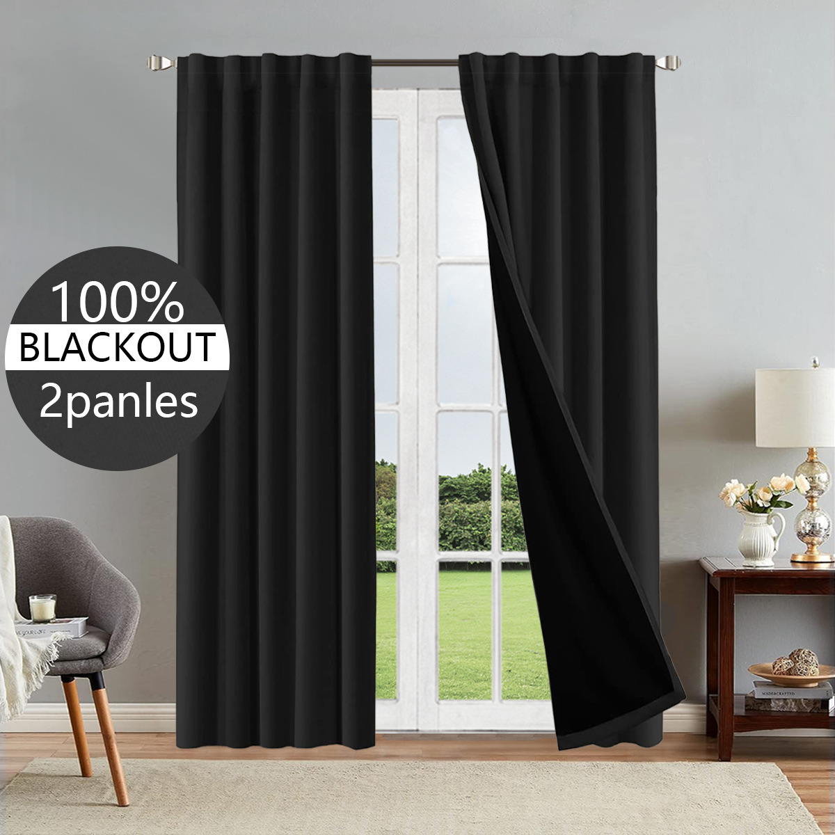 1/2개 100% 암막 완전 차광 필름 커튼 자외선 차단 단색 수출용 반조립 커튼