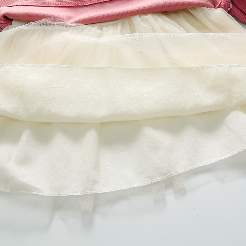 2024 새로운 아동복 봄 메쉬 스웨터 유아 소녀 봄 옷 3 피스 어린이 세트 배달스토어 가기