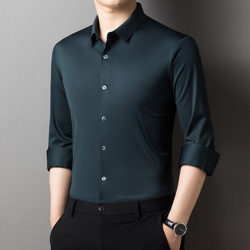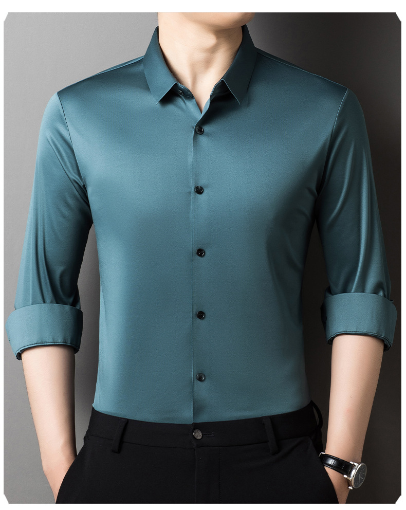 2024 봄과 가을 남성의 원활한 남성 셔츠 봄 새로운 탄성 긴 소매 중년 셔츠 캐주얼 비즈니스 인치
