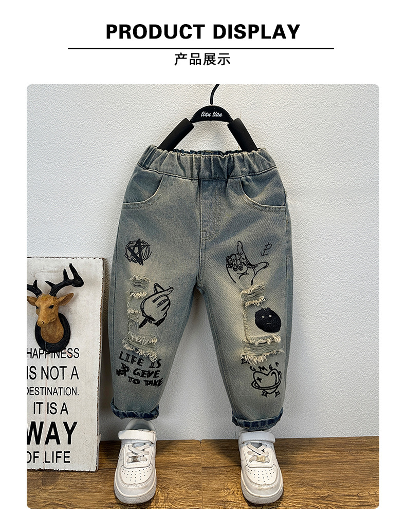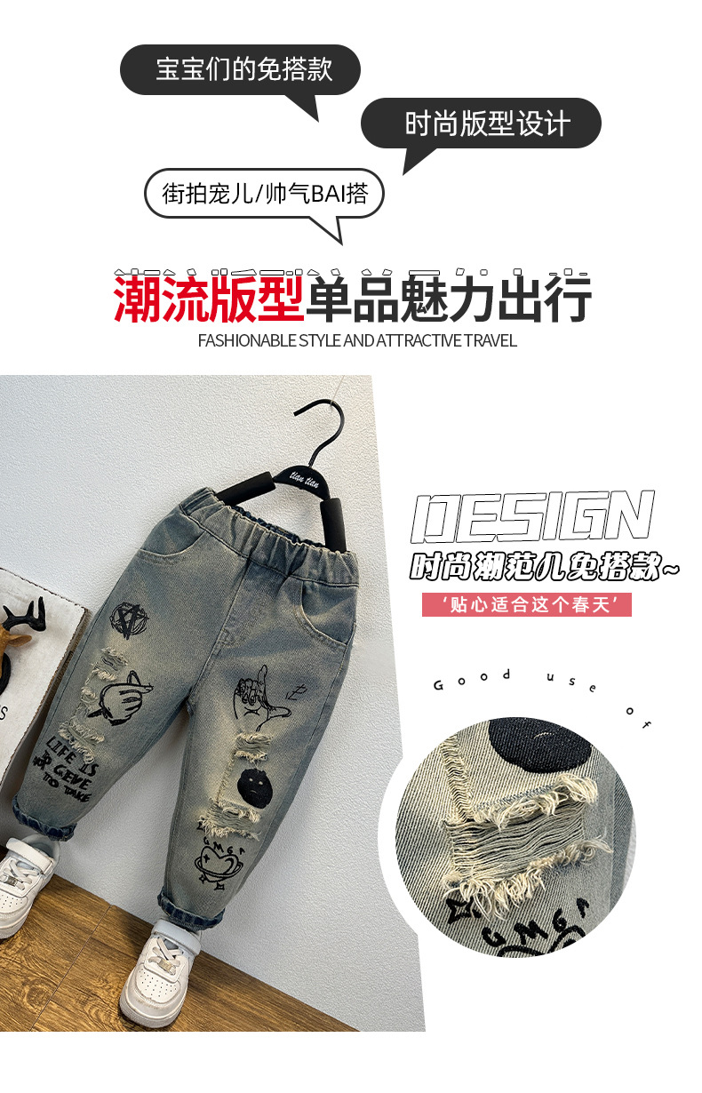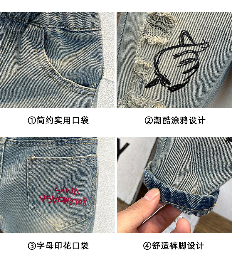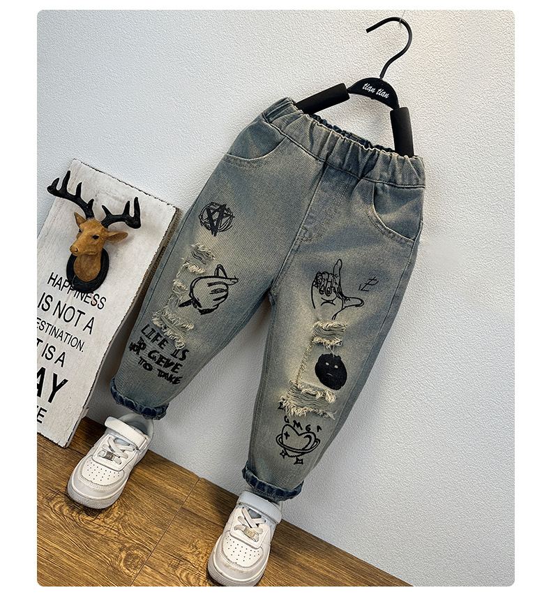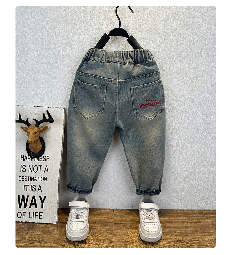 소년 청바지 봄 2024 새로운 멋진 잘 생긴 아동복 Ruan 잘 생긴 캐주얼 바지 아기 봄과 가을 얇은 바지스토어 가기