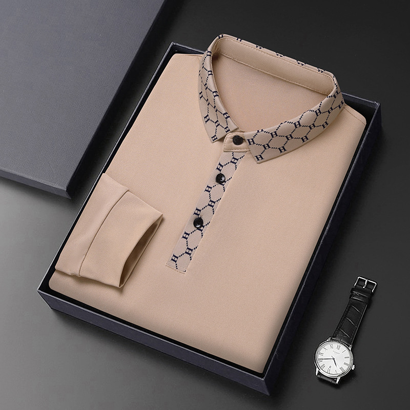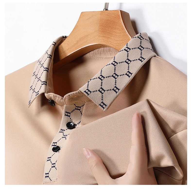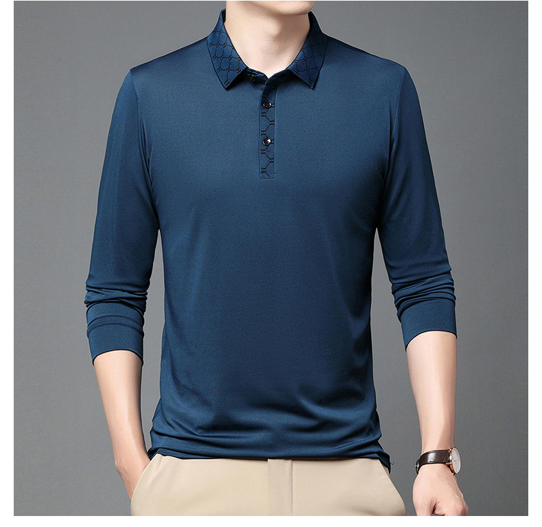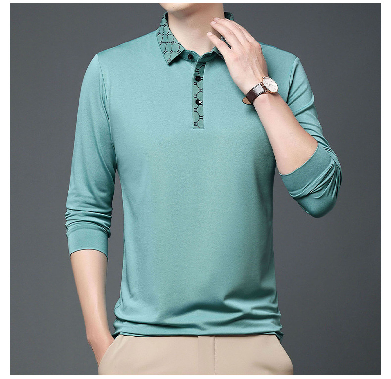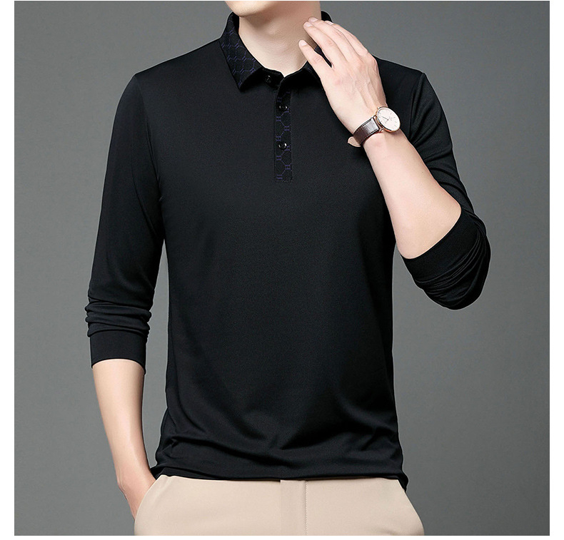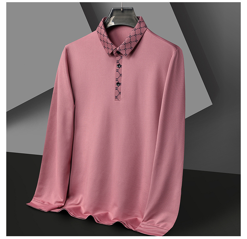 2024 봄과 가을 새로운 남성 긴팔 자카드 티셔츠 젊고 중년 남성의 느슨한 옷깃 단색 폴로 셔츠 탑스토어 가기