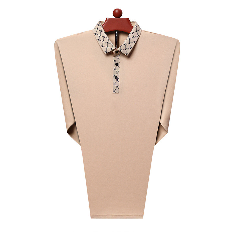 2024 봄과 가을 새로운 남성 긴팔 자카드 티셔츠 젊고 중년 남성의 느슨한 옷깃 단색 폴로 셔츠 탑