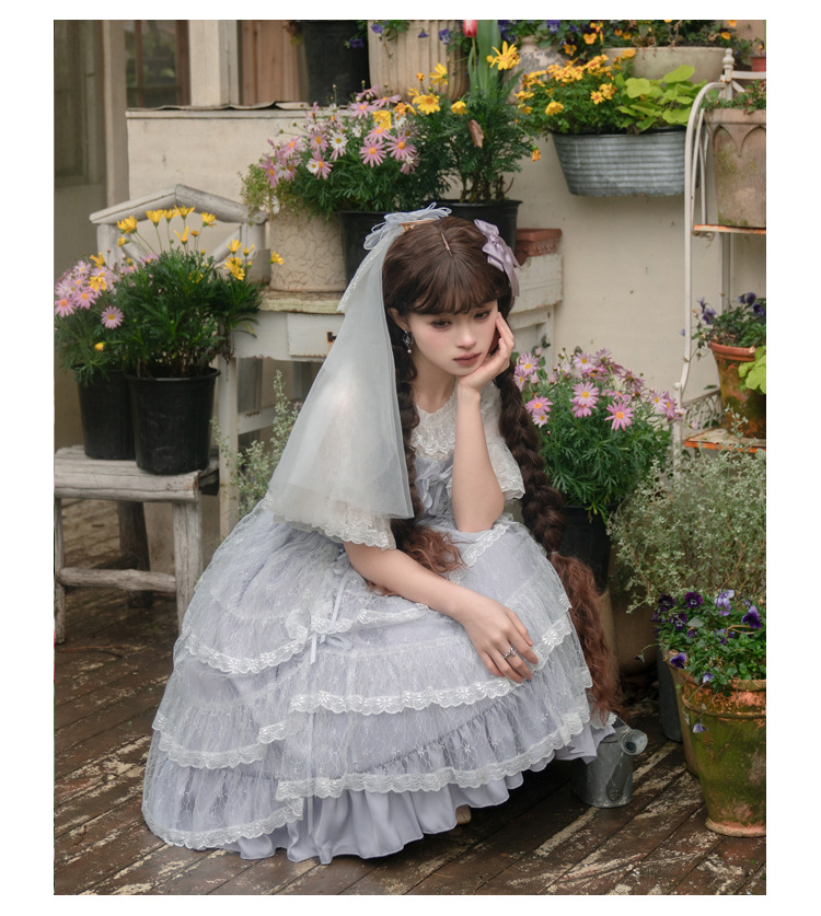 오리지널 로리타 원피스 지 소매 반팔 셔츠 레이스 쉬폰 로리타 탑 셔츠 하프 소매 바닥 셔츠