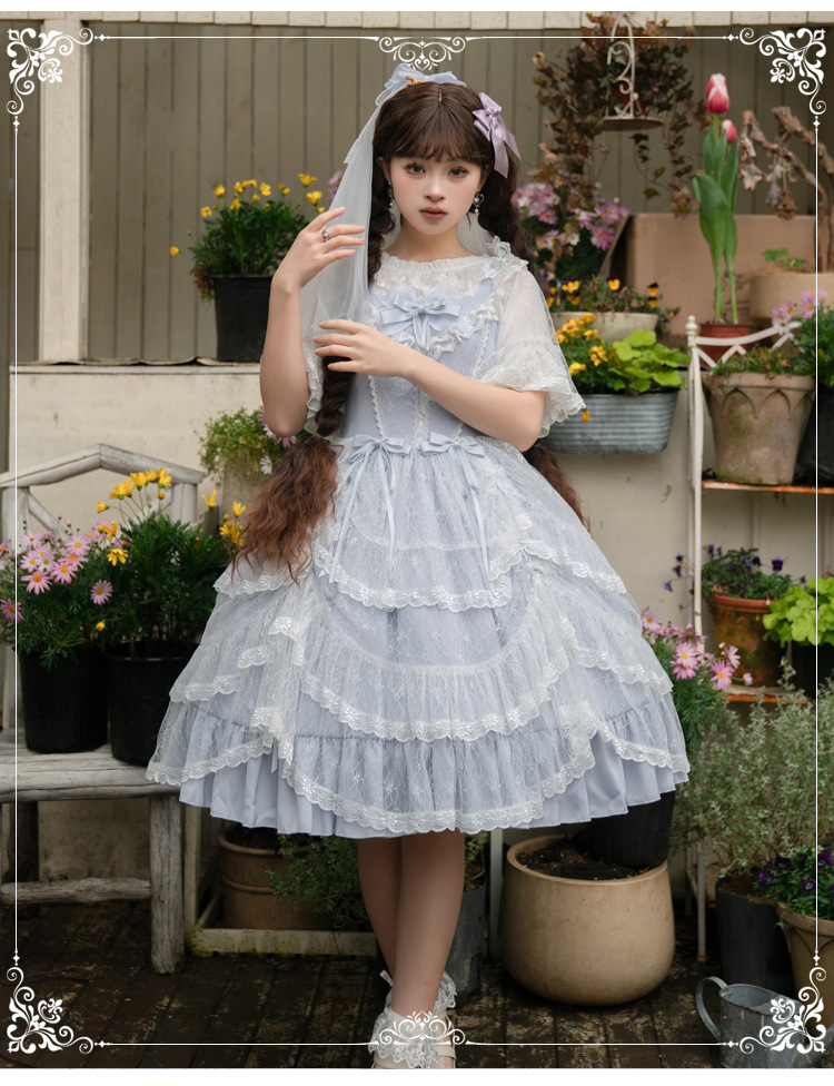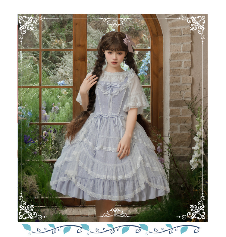 오리지널 로리타 원피스 지 소매 반팔 셔츠 레이스 쉬폰 로리타 탑 셔츠 하프 소매 바닥 셔츠스토어 가기