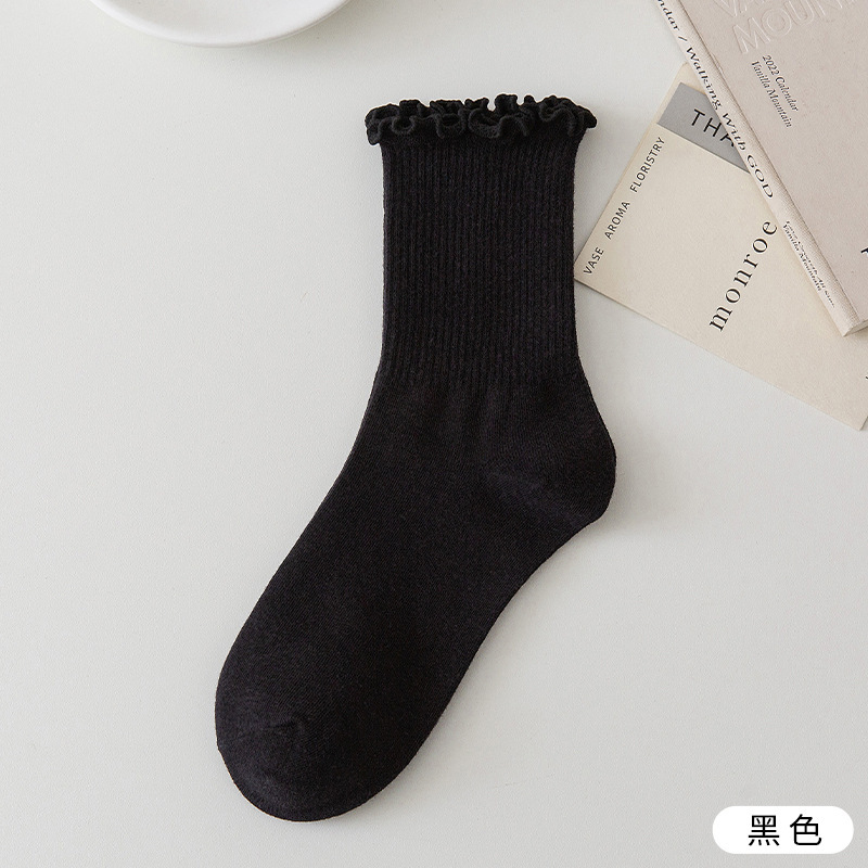 흰색 나무 귀 더미 양말 여름 얇은 일본 jk 양말 여성 Lolita Mary Jane 신발 레이스 중반 종아리 길이 양말스토어 가기