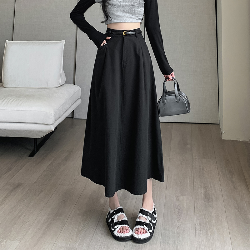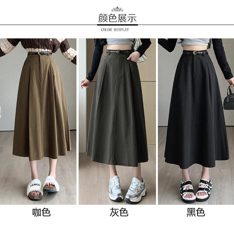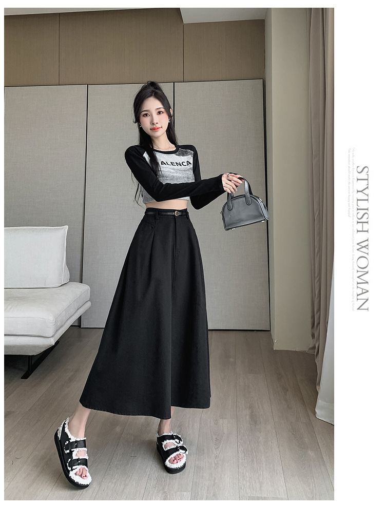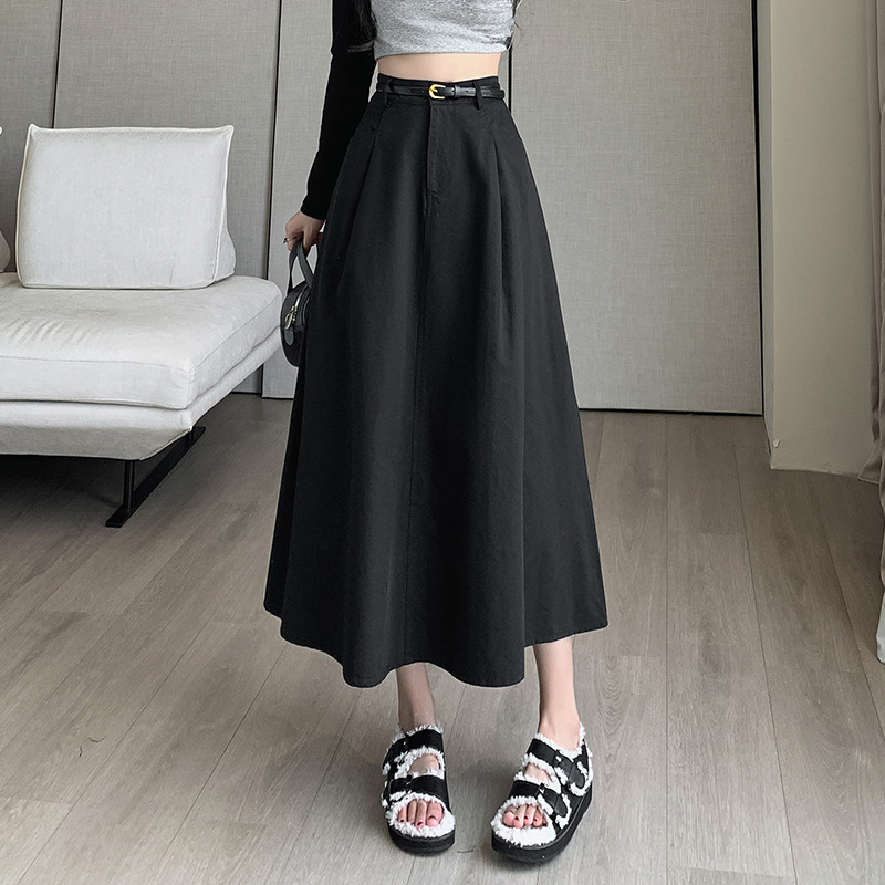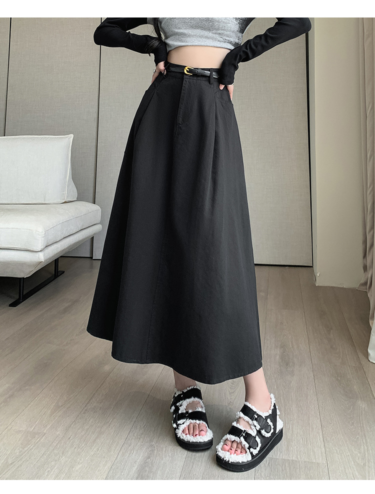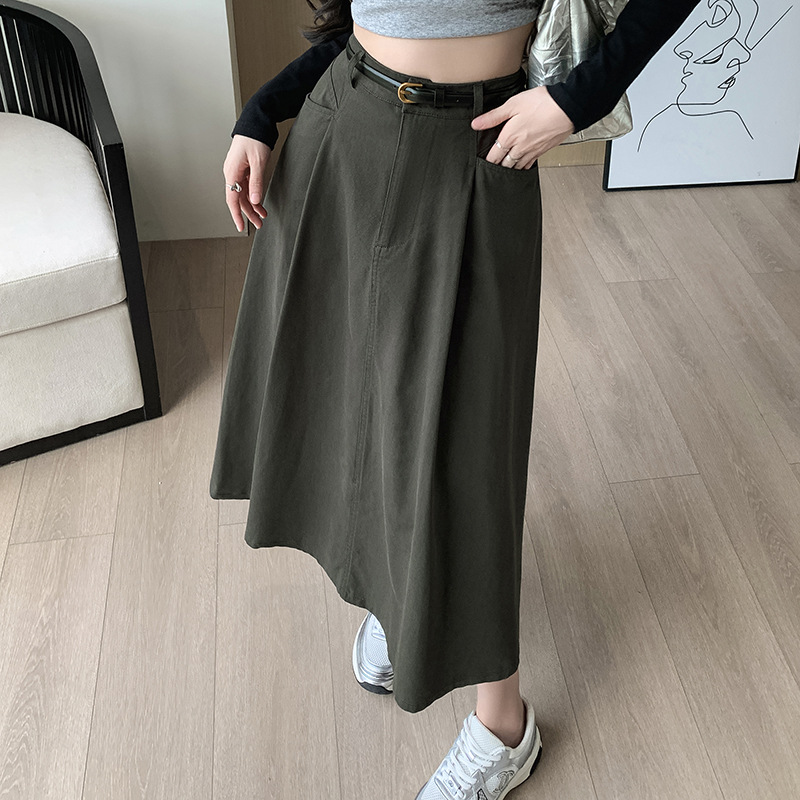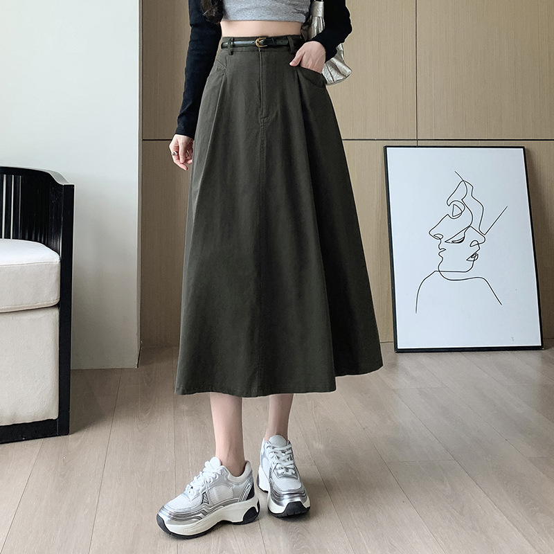중간 길이의 스커트 2024 봄과 여름 새로운 플러스 사이즈 높은 허리 슬리밍 A 라인 스커트 대형 스윙 데님 스커트 여성용스토어 가기