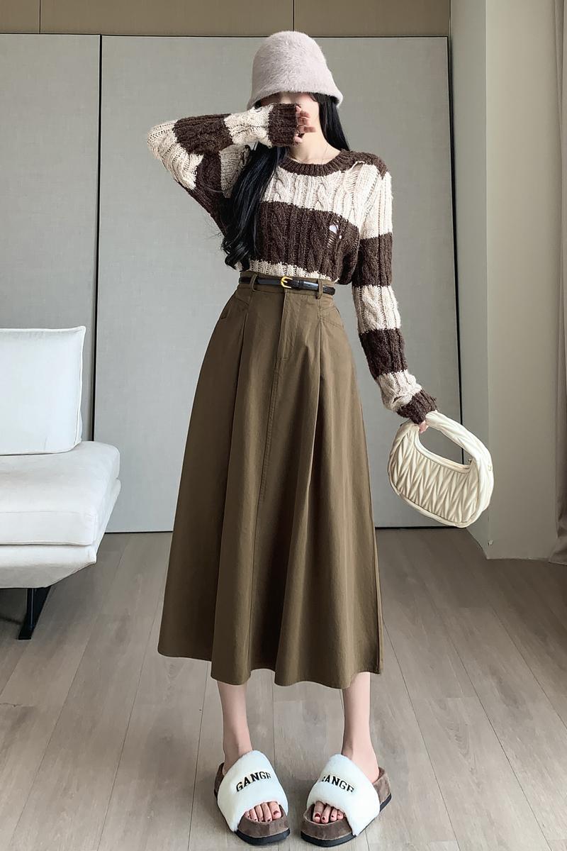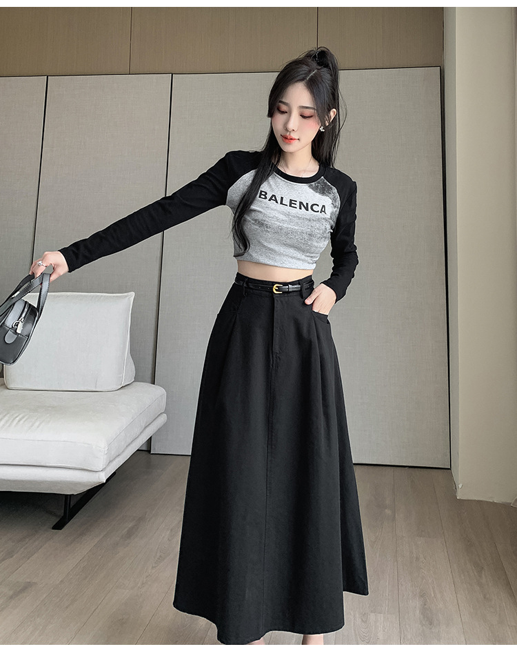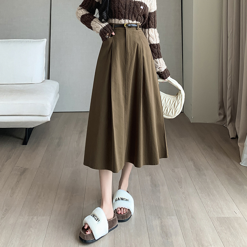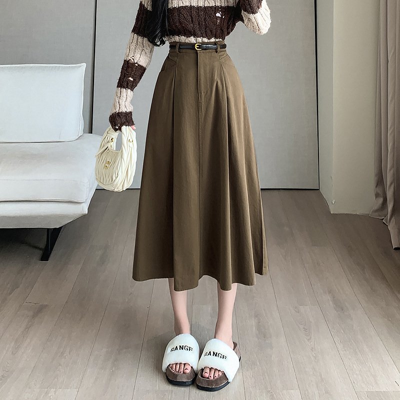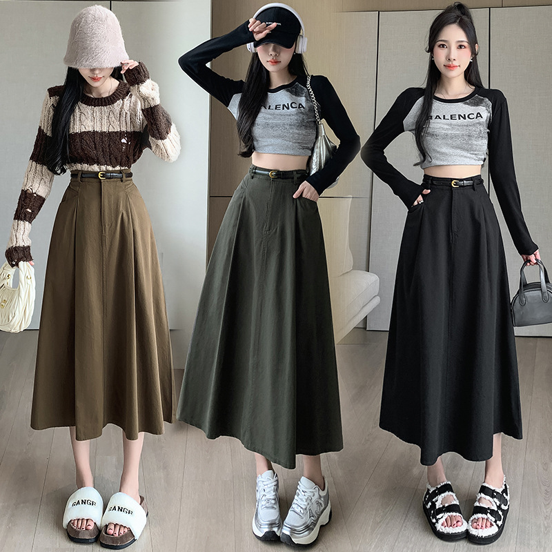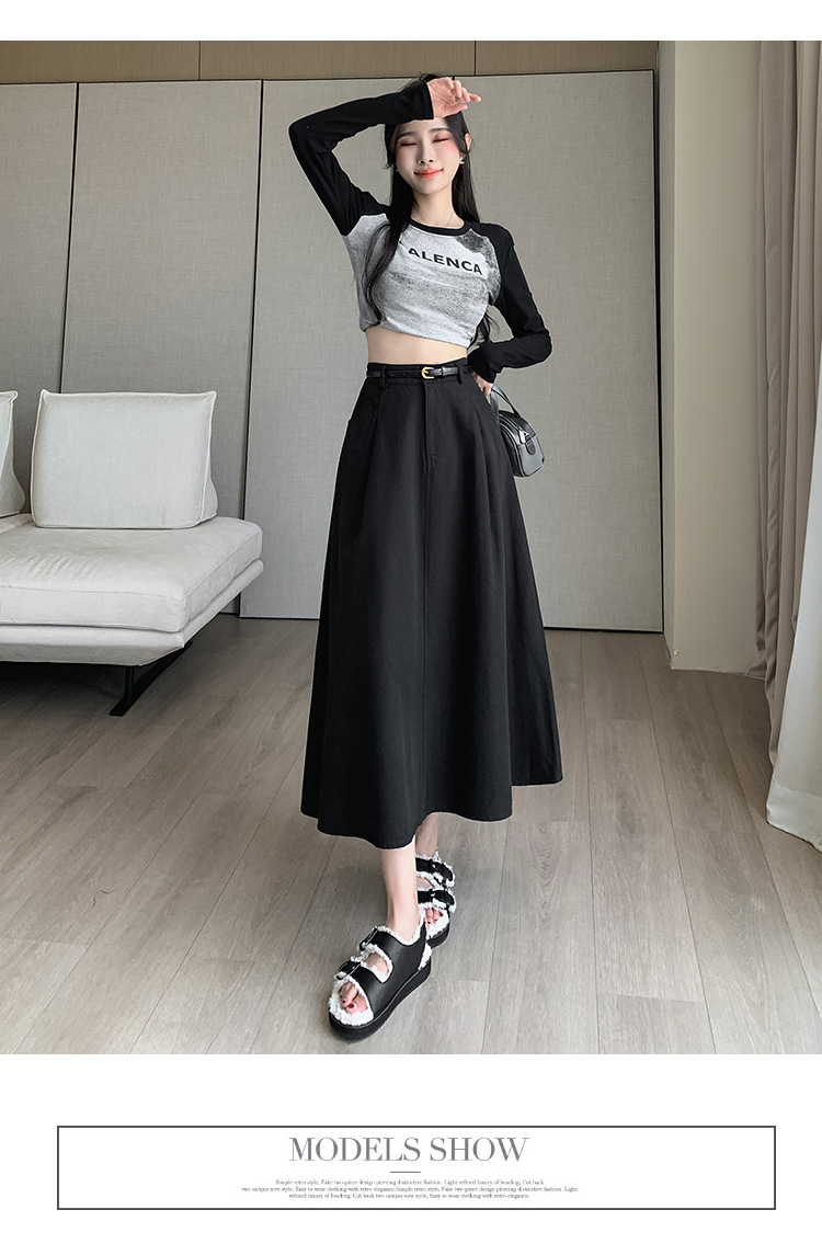 중간 길이의 스커트 2024 봄과 여름 새로운 플러스 사이즈 높은 허리 슬리밍 A 라인 스커트 대형 스윙 데님 스커트 여성용스토어 가기