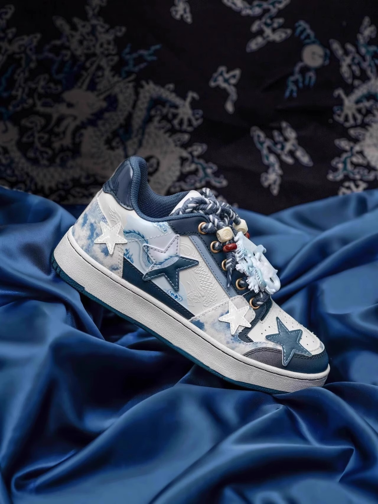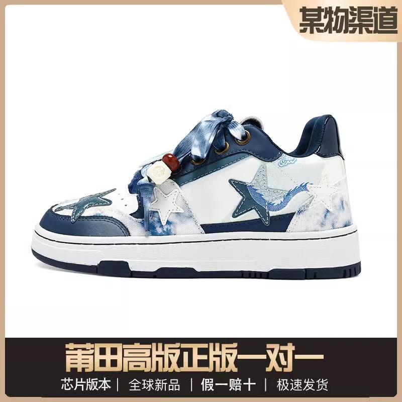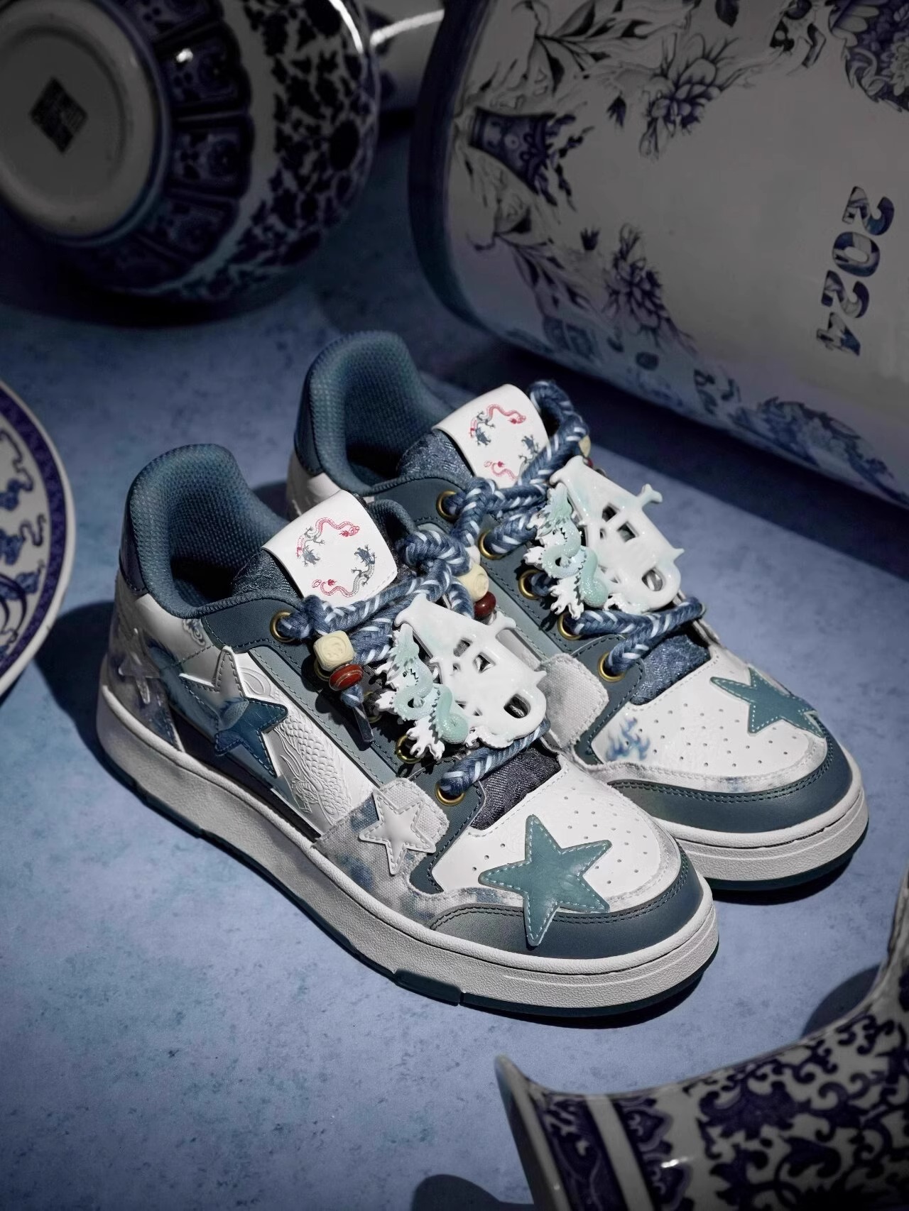 스타 슈즈 드래곤 년 제한 블루와 화이트 도자기 로우 탑 두꺼운 여성 스니커즈 2024 새로운 봄 레트로 더티 슈즈 남성용 신발