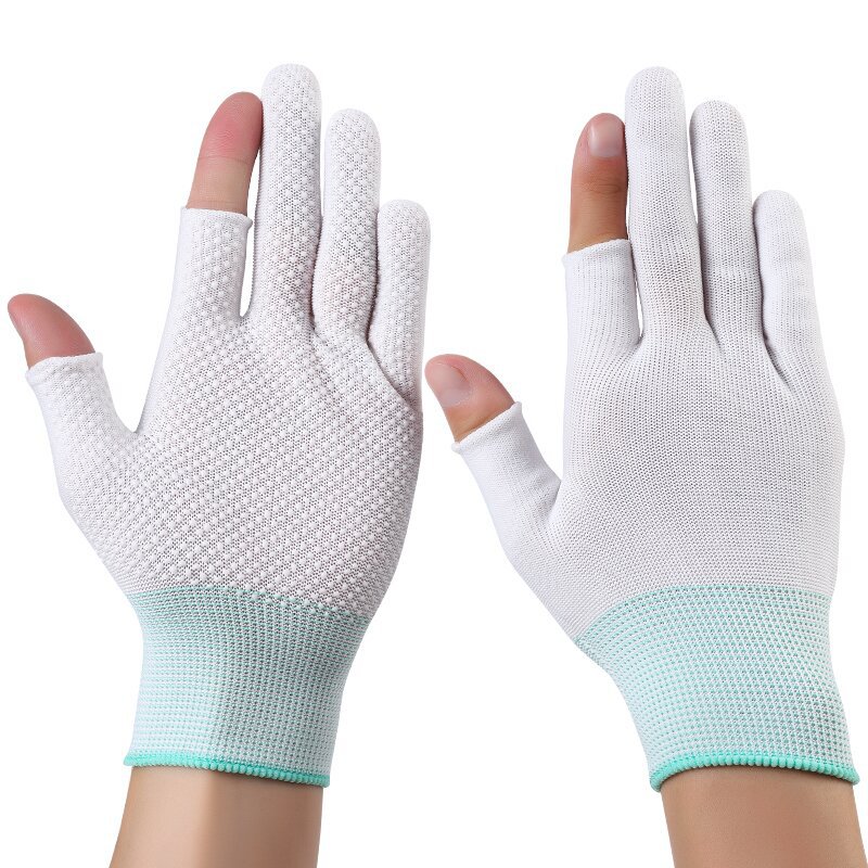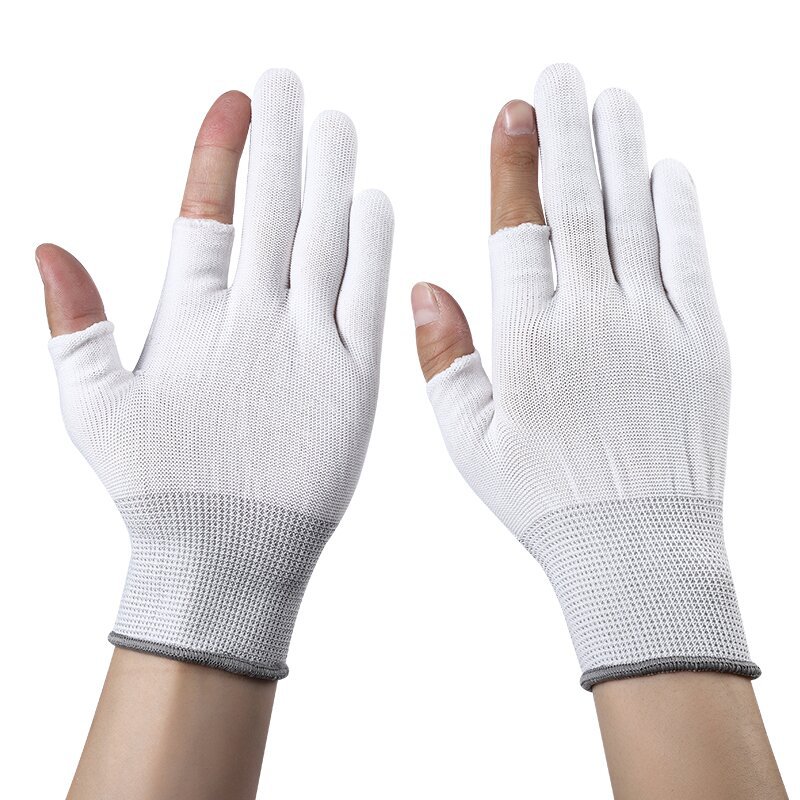 • 흰색 누출 두 손가락 나일론 장갑 * 접착제 없음