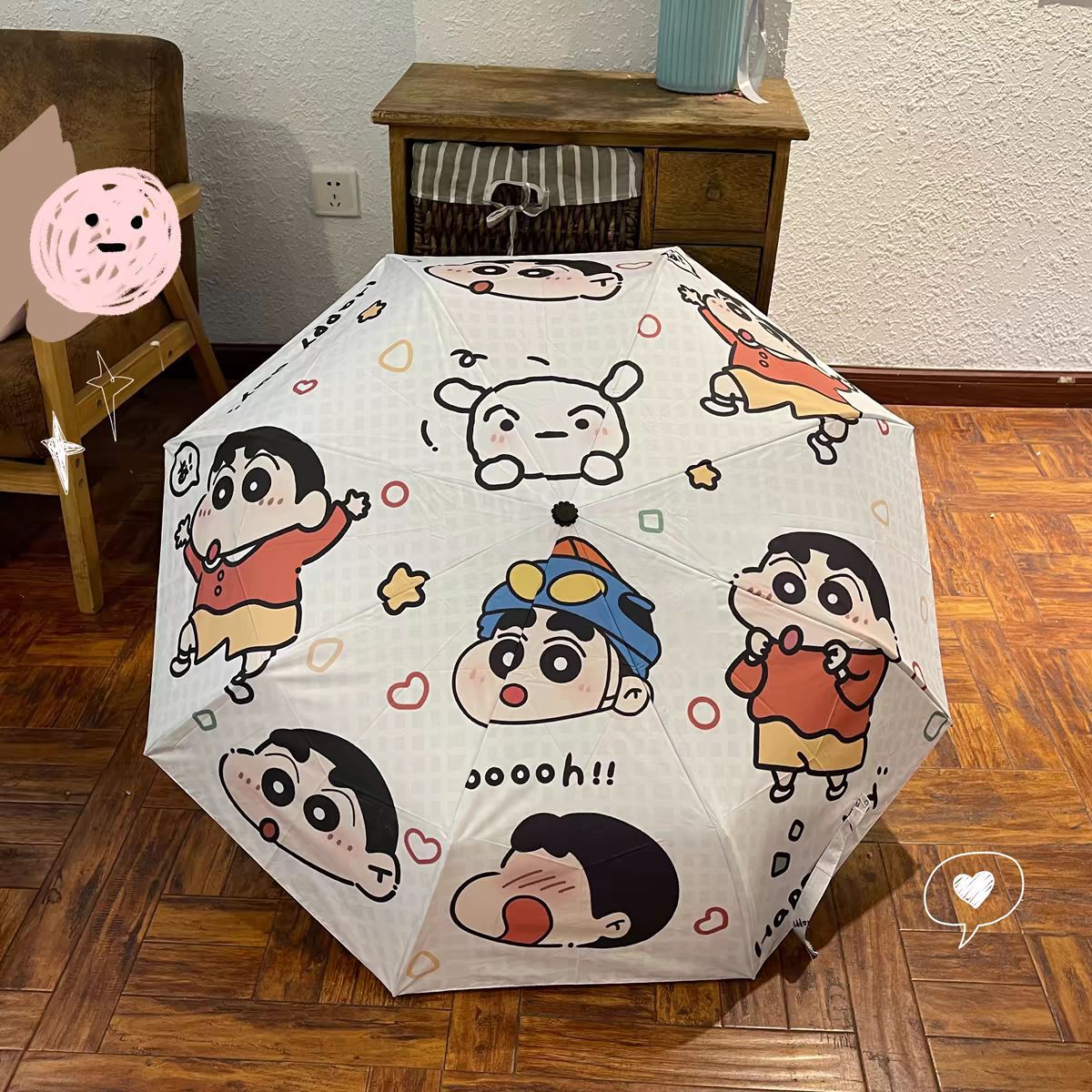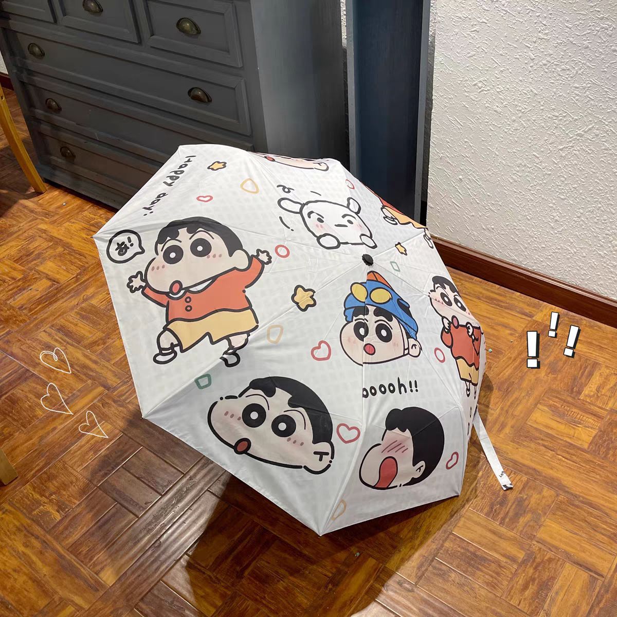 크레용 샤오신 자동 우산 귀여운 만화 접이식 태양 보호 우산 여성 자외선 차단 비와 비 이중 사용스토어 가기