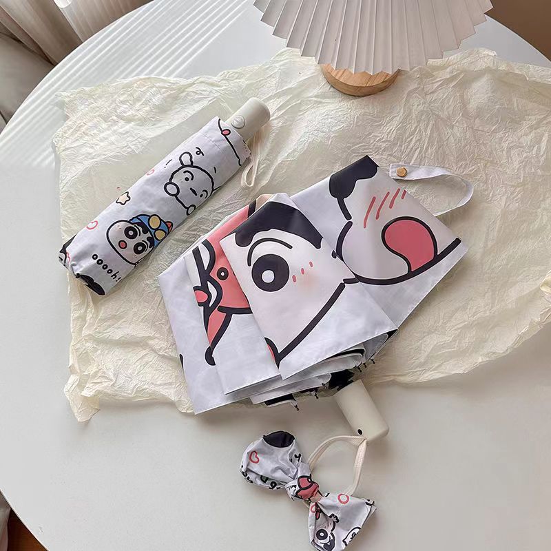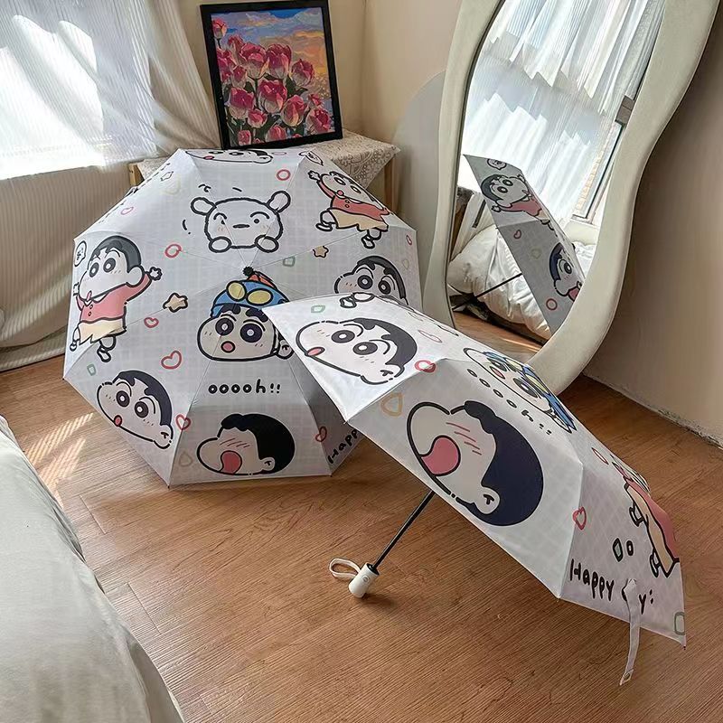 크레용 샤오신 자동 우산 귀여운 만화 접이식 태양 보호 우산 여성 자외선 차단 비와 비 이중 사용