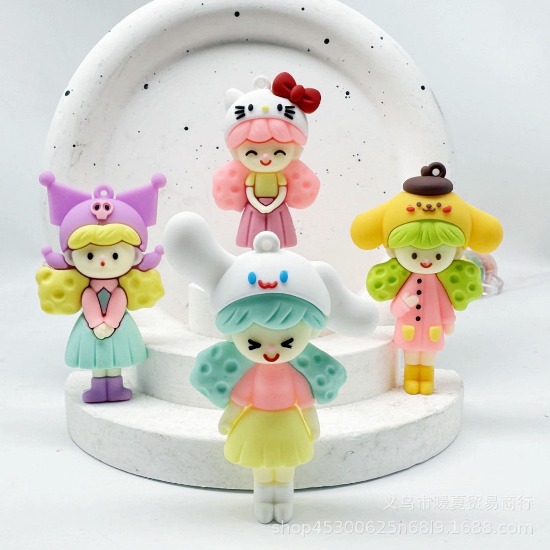 만화 귀여운 소녀 산리오 키 체인 액세서리 자동차 데스크탑 장식 펜던트 고고 학적 블라인드 박스 인형 도매스토어 가기