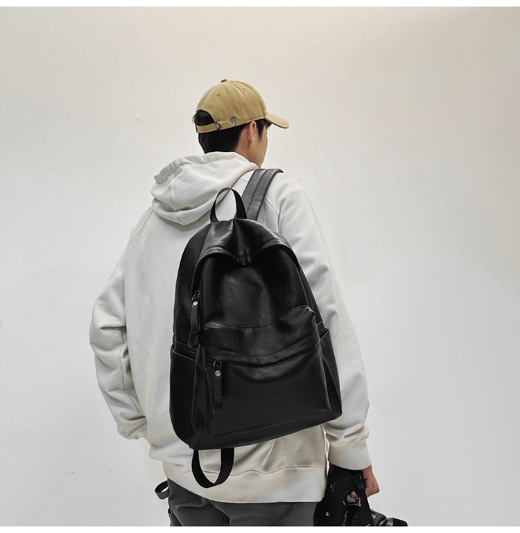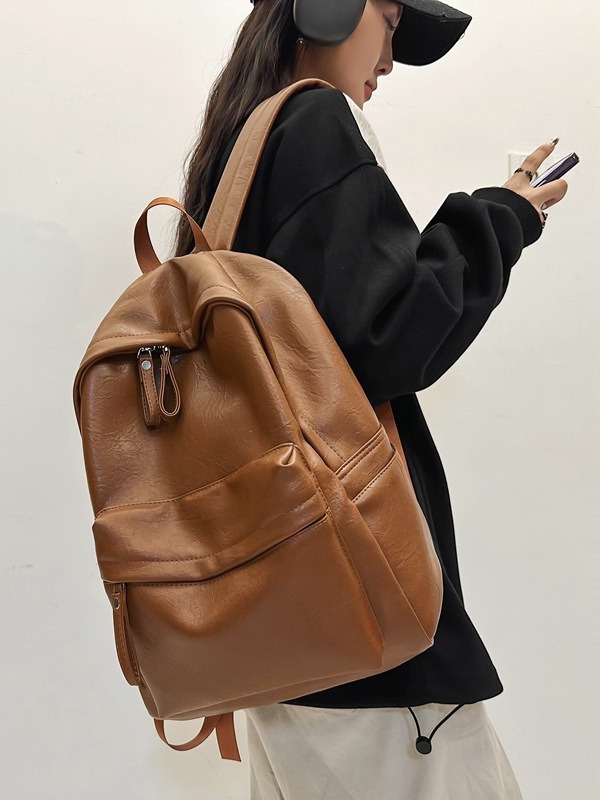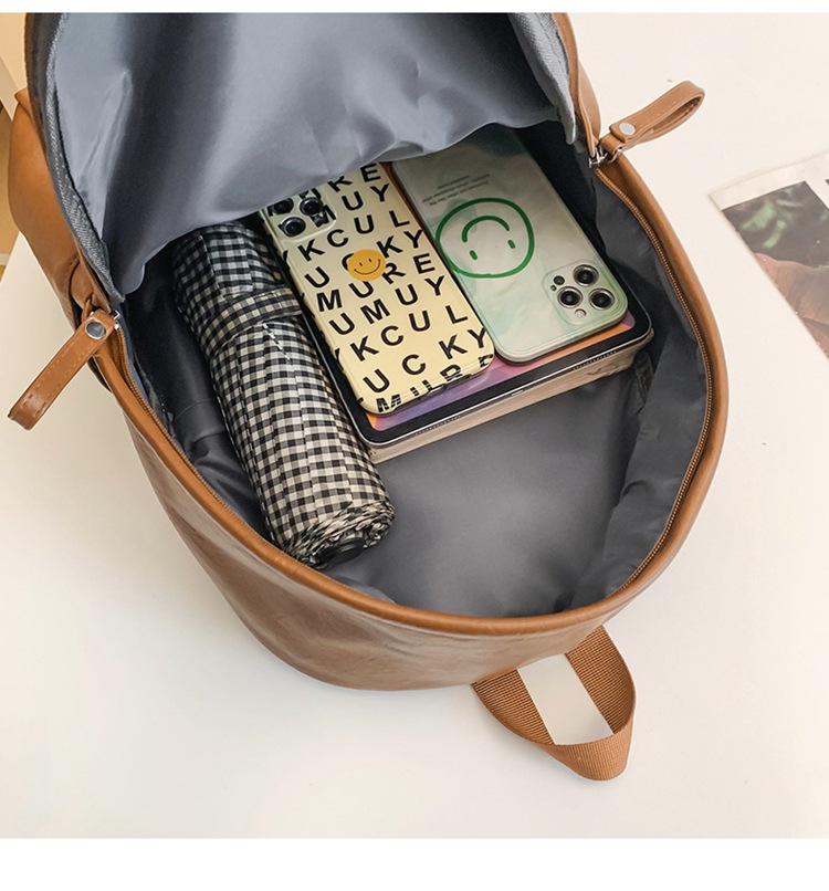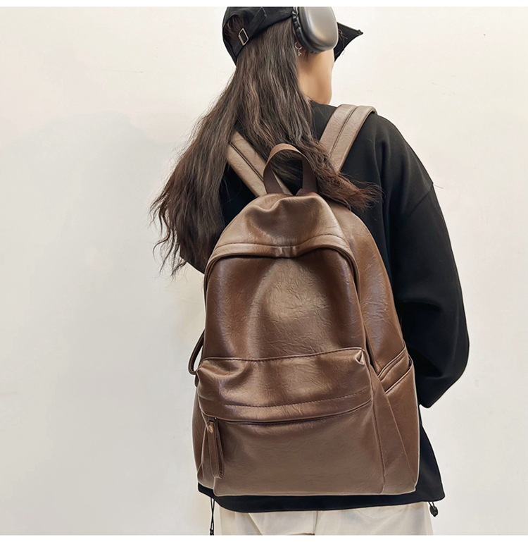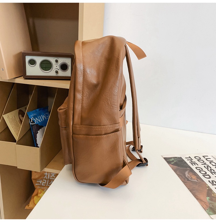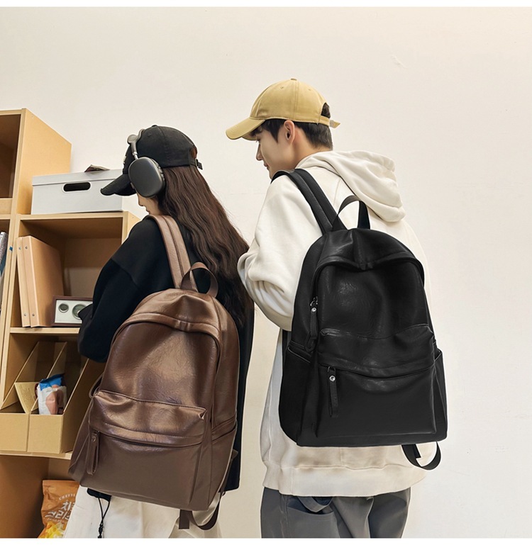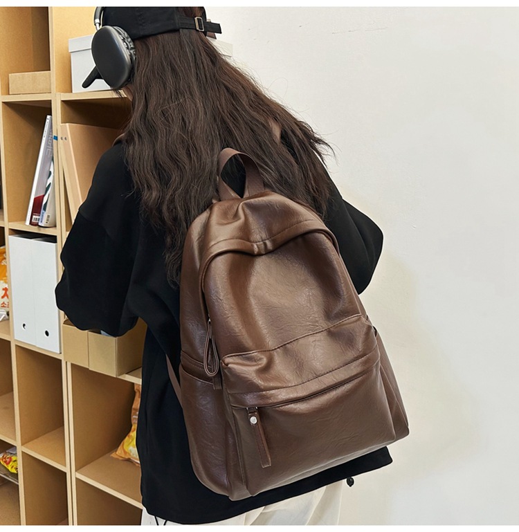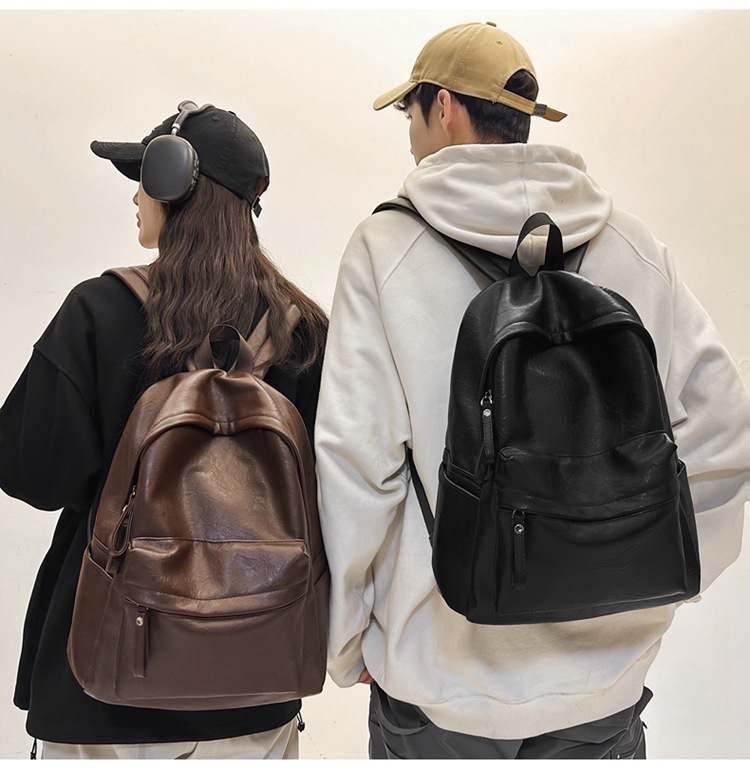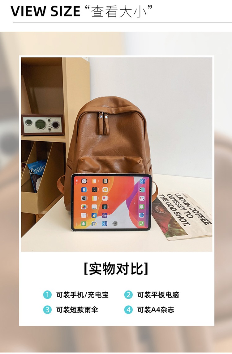 Pu 단색 간단한 매일 통근 배낭 2024 봄 새로운 대용량 배낭 여행 가방 도매스토어 가기