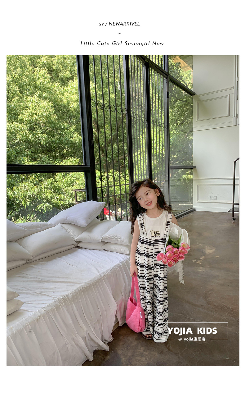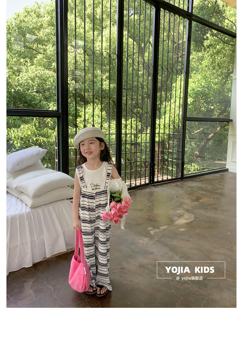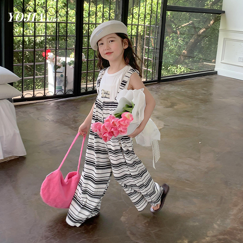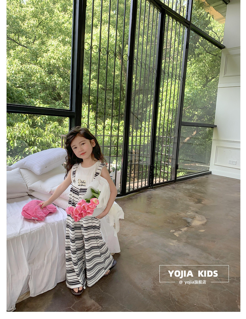 소녀 아이스 실크 서스펜더 바지 투피스 세트 여름 원피스 민소매 티셔츠 넓은 다리 바지 어린이와 소녀 슬링 모기 방지 바지 세트