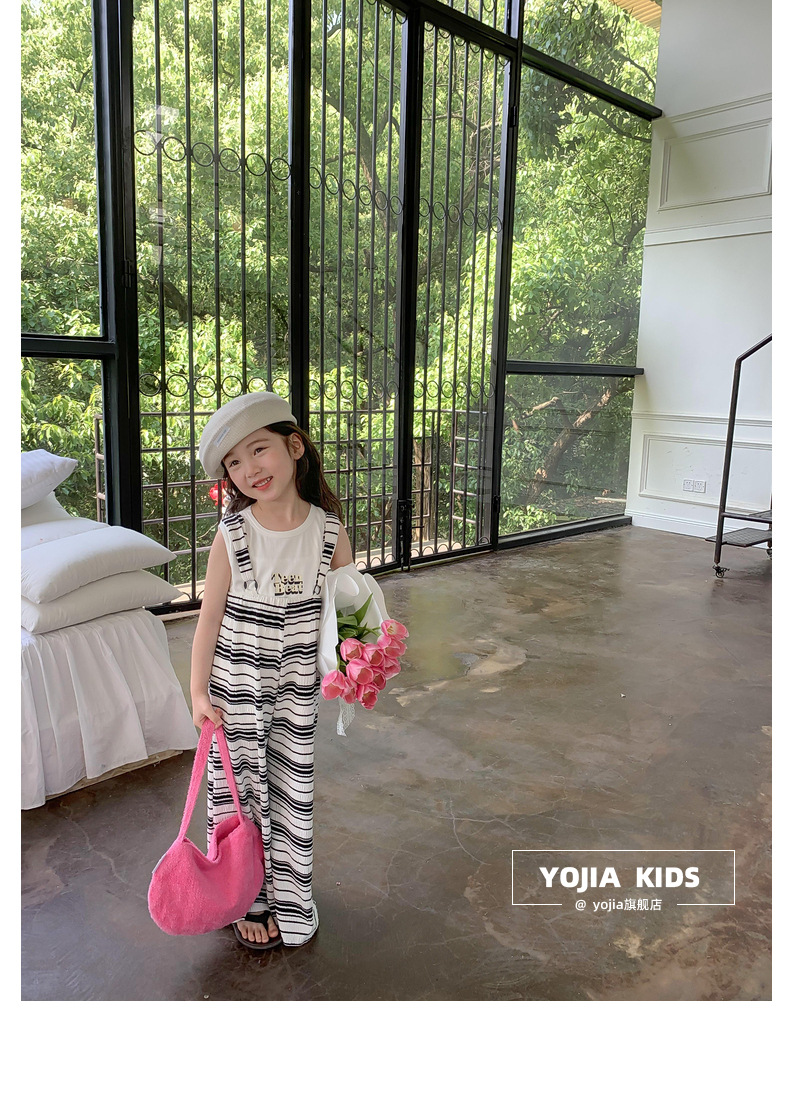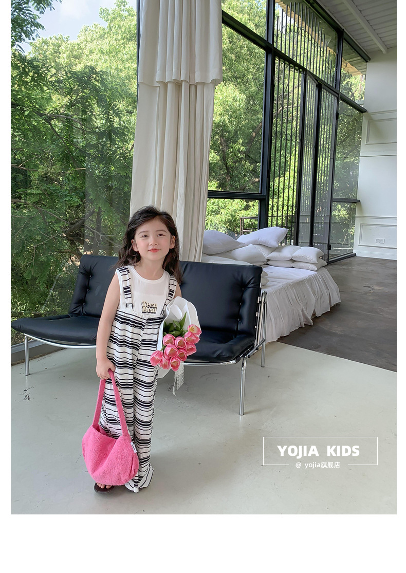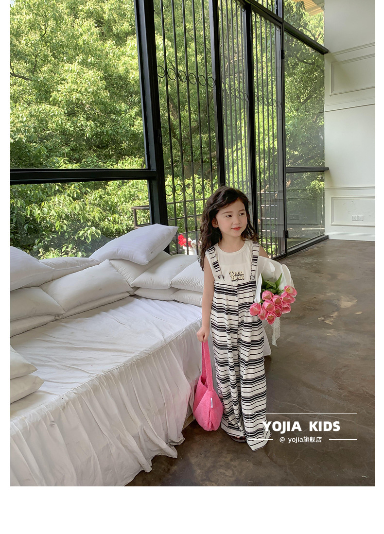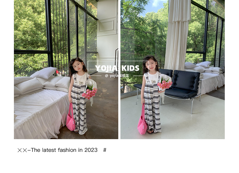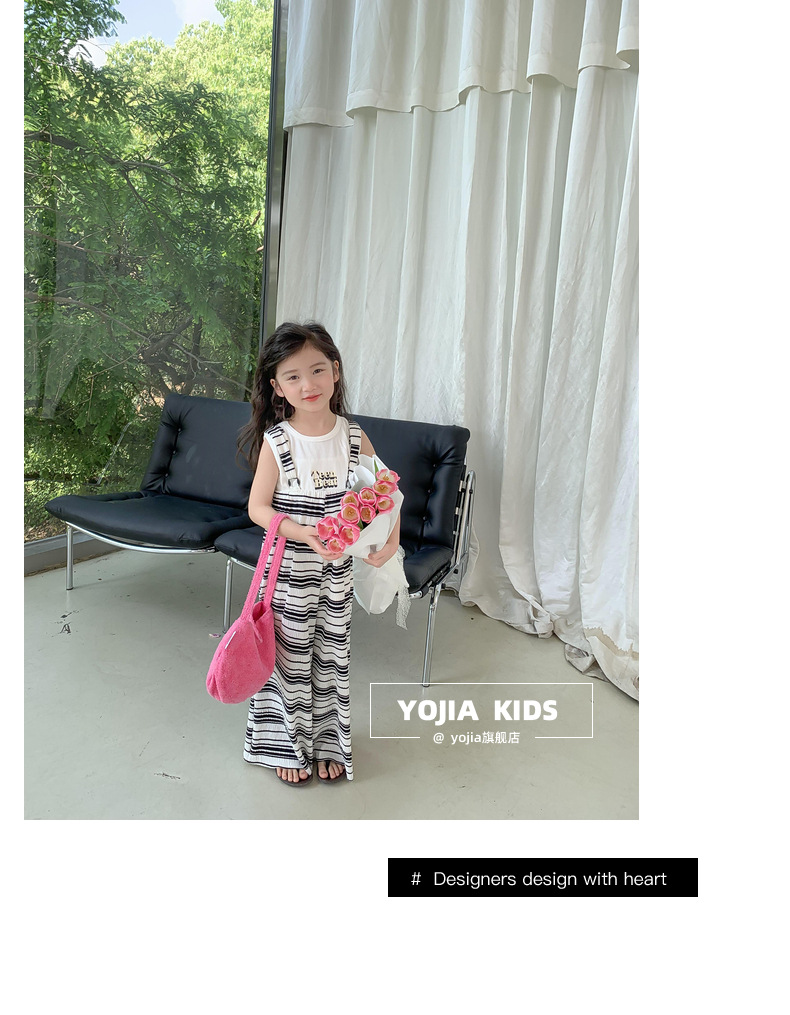 소녀 아이스 실크 서스펜더 바지 투피스 세트 여름 원피스 민소매 티셔츠 넓은 다리 바지 어린이와 소녀 슬링 모기 방지 바지 세트