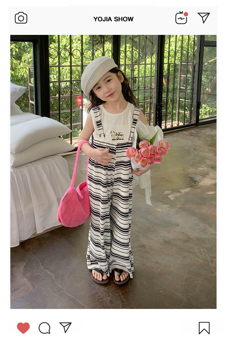 소녀 아이스 실크 서스펜더 바지 투피스 세트 여름 원피스 민소매 티셔츠 넓은 다리 바지 어린이와 소녀 슬링 모기 방지 바지 세트스토어 가기