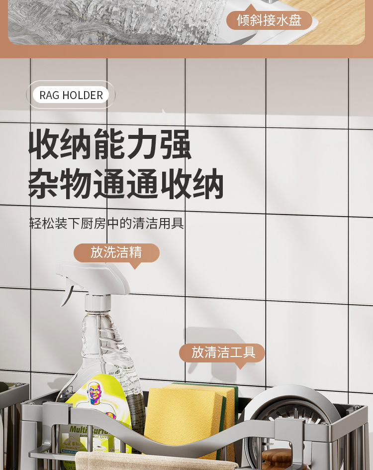 국경 간 주방 배수 랙 싱크 세제 스폰지 헝겊 저장 랙 배수 아티팩트 스틸 볼 스토리지 랙