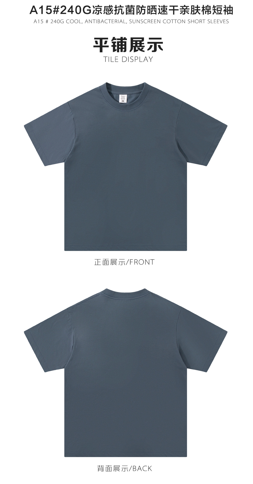여름 2024 240 kesona 시원한 기술 단색 티셔츠 야외 태양 보호 빠른 건조 통기성 둥근 목 짧은 소매 남성