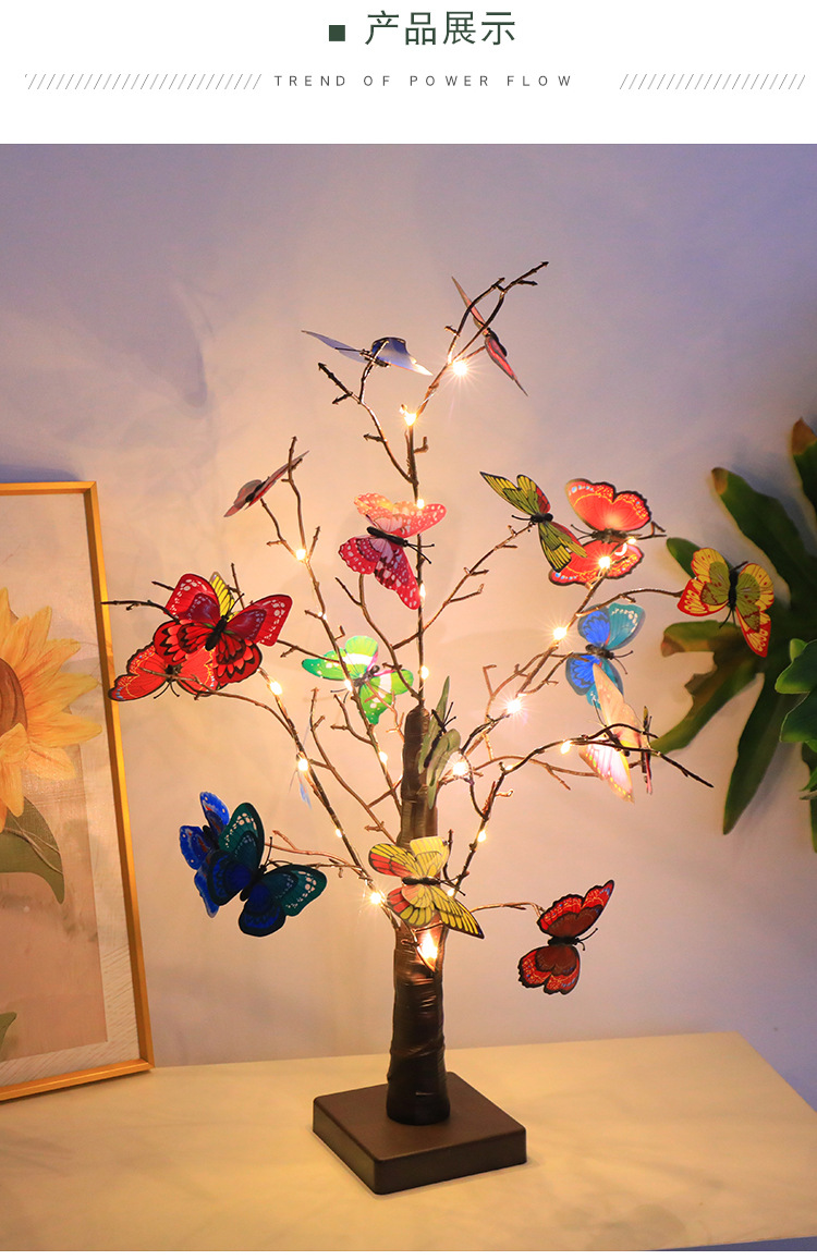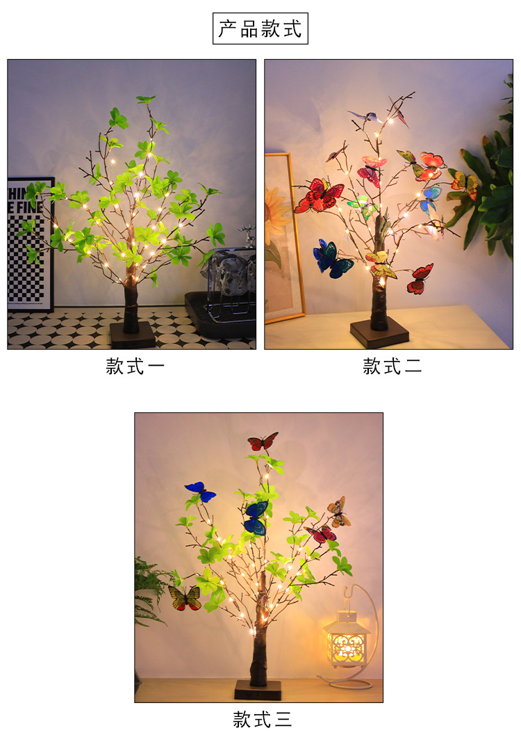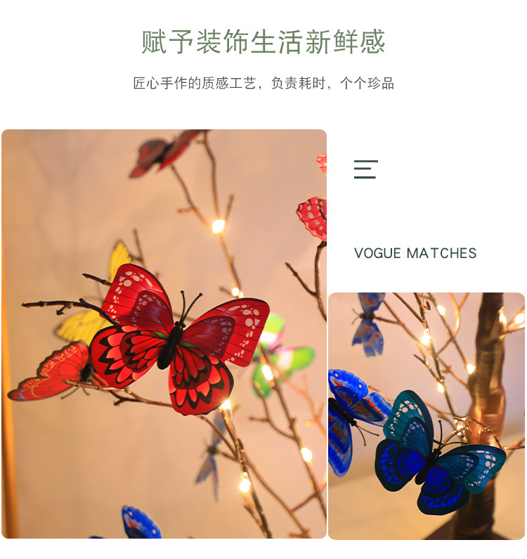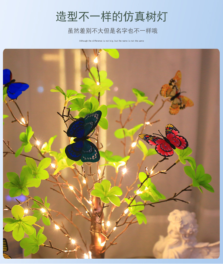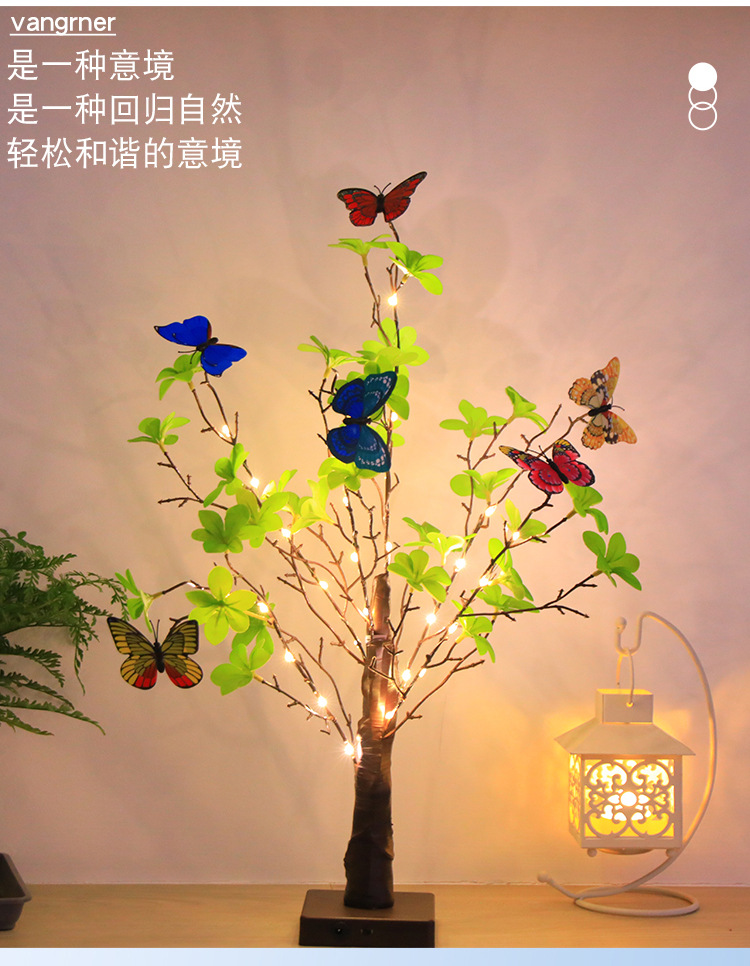 새로운 국경 2024LED 시뮬레이션 죽은 지점 나비 시계 매달려 녹색 축제 분위기 배경 빛나는 작은 나무 램프 잎스토어 가기