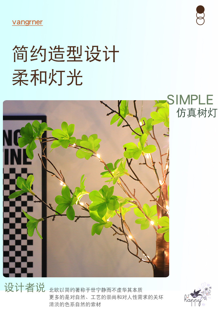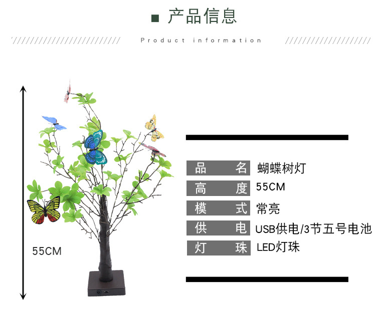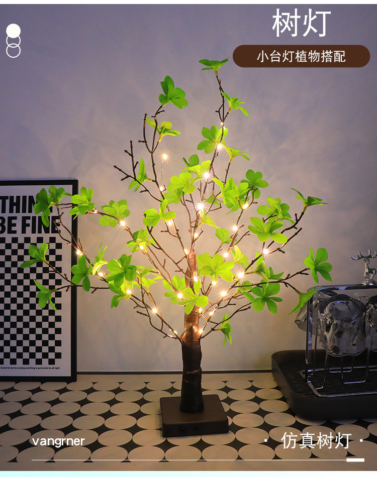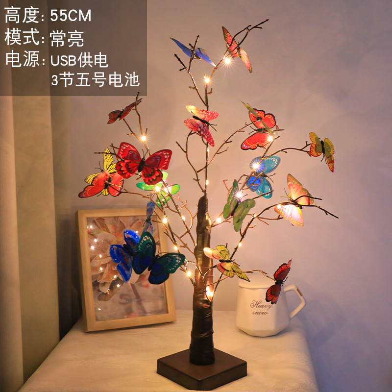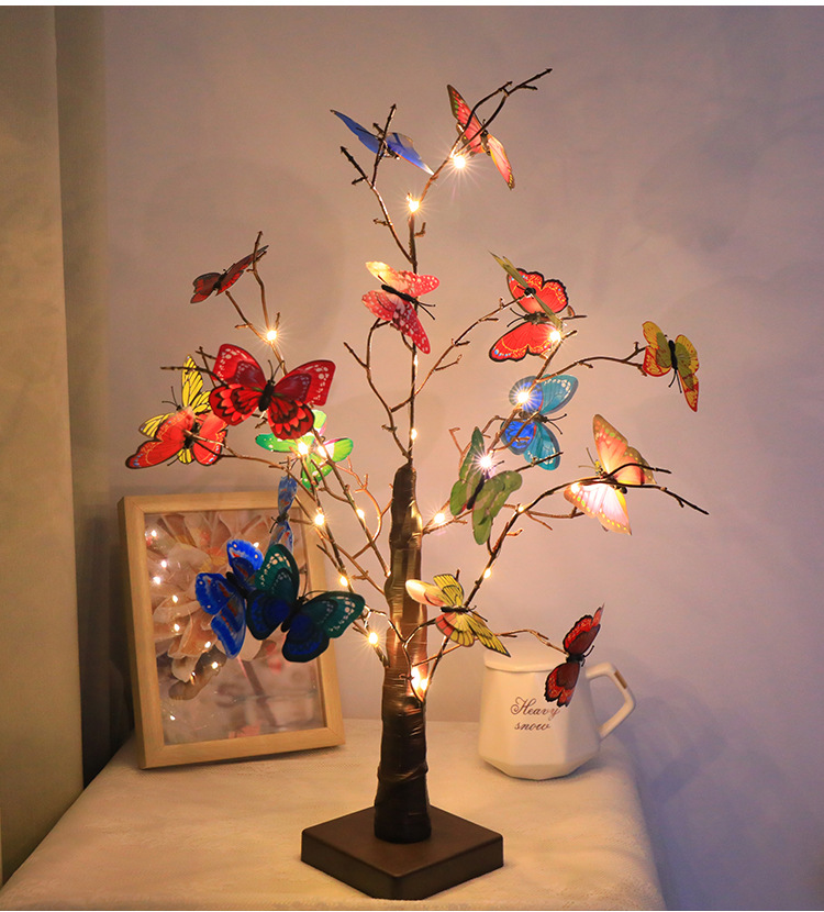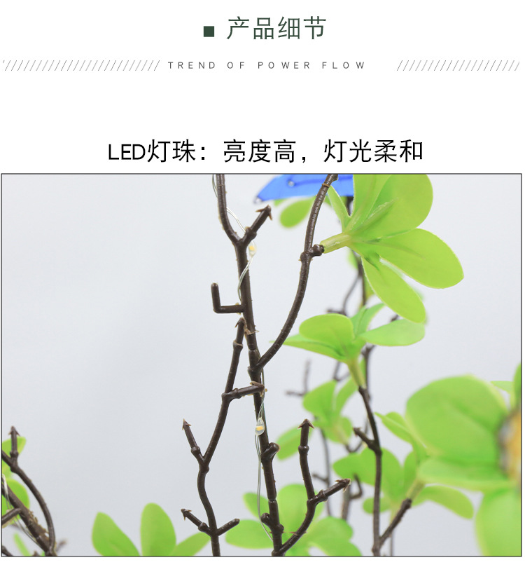 새로운 국경 2024LED 시뮬레이션 죽은 지점 나비 시계 매달려 녹색 축제 분위기 배경 빛나는 작은 나무 램프 잎스토어 가기