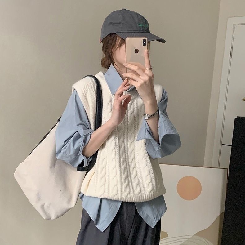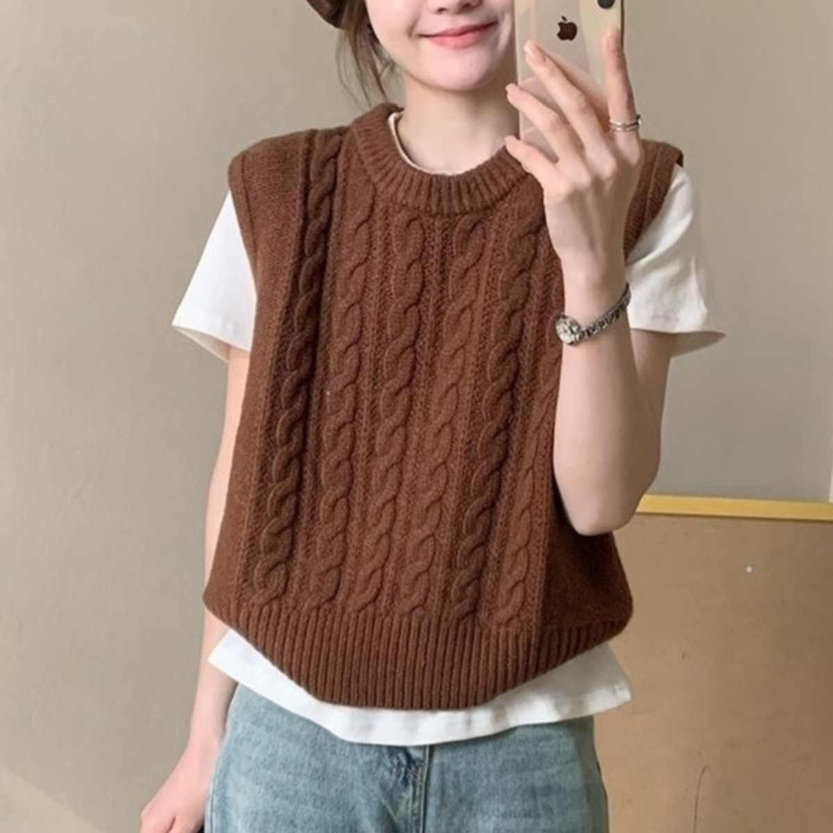 새로운 둥근 목 트위스트 외부 스웨터 조끼 느슨한 양복 조끼 2024 여성을위한 복고풍 쌓인 니트 조끼스토어 가기