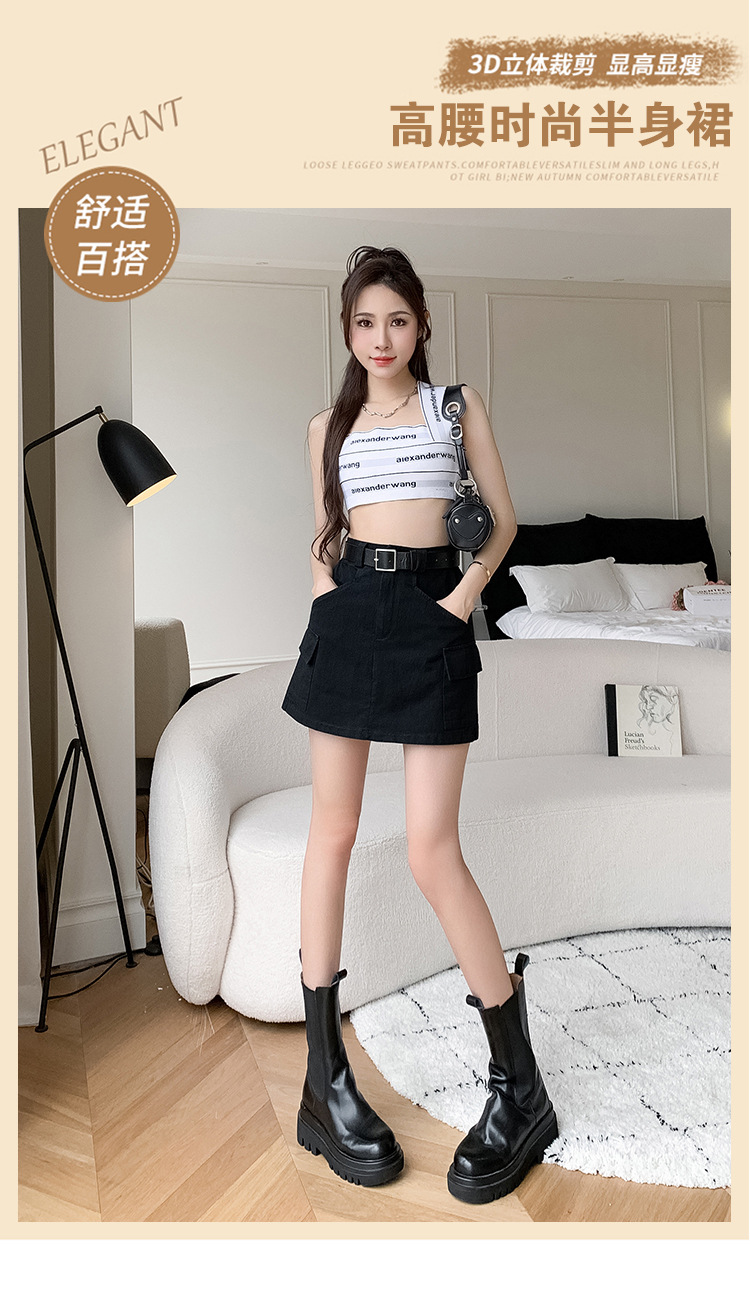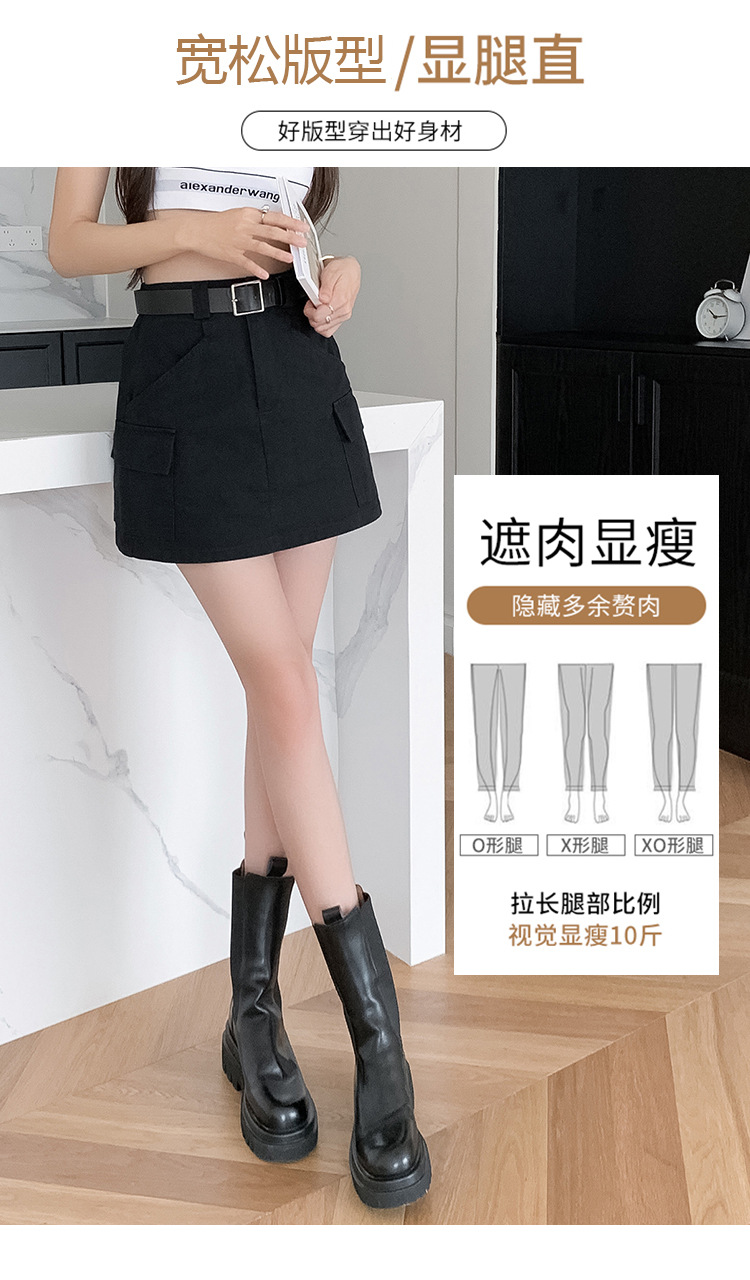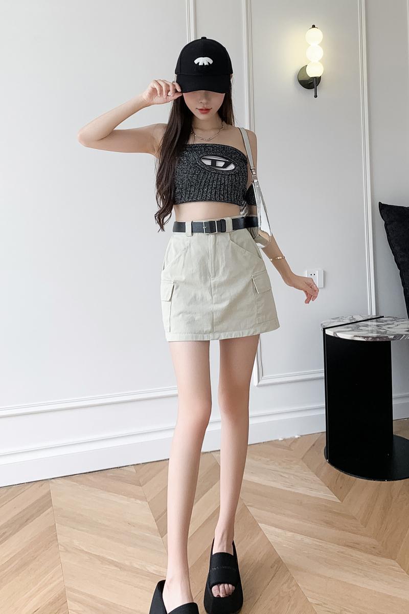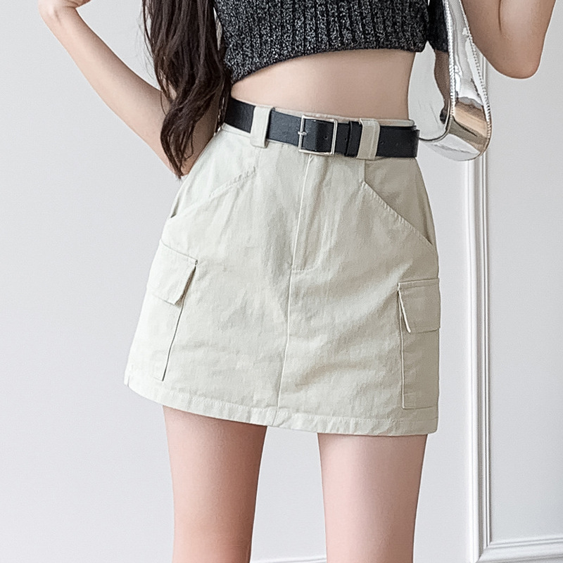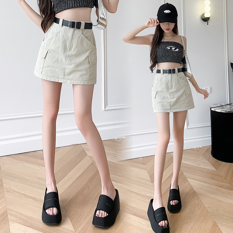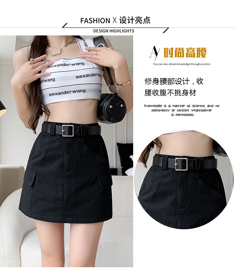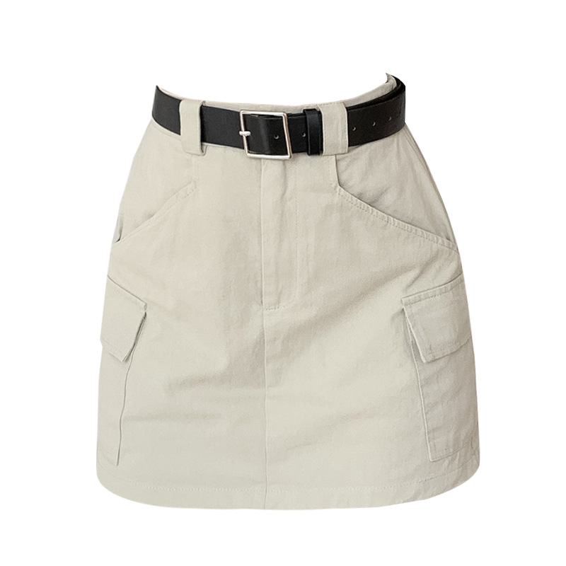 2024 여름 새로운 복고풍 작업복 스커트 디자인 벨트 캐주얼 A 라인 스커트 핫 소녀 작업복 스커트