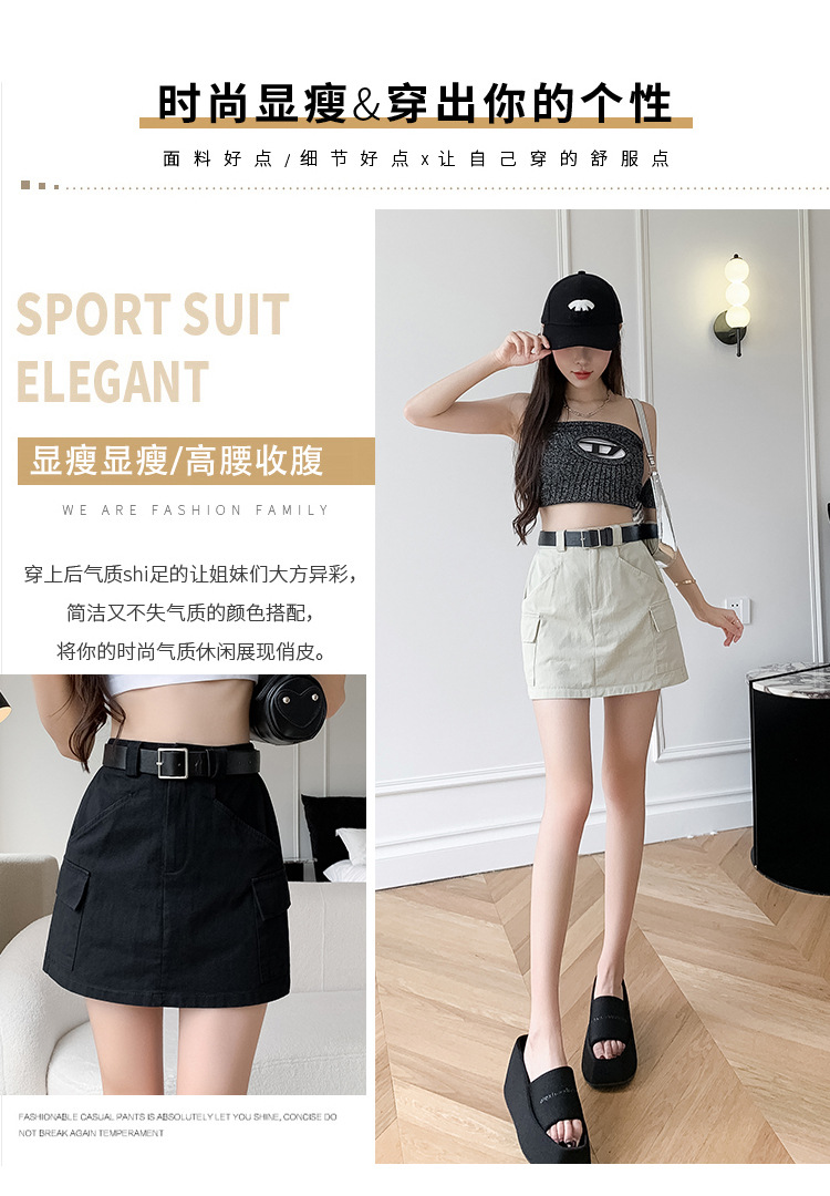 2024 여름 새로운 복고풍 작업복 스커트 디자인 벨트 캐주얼 A 라인 스커트 핫 소녀 작업복 스커트스토어 가기