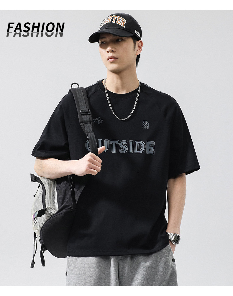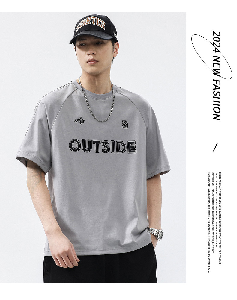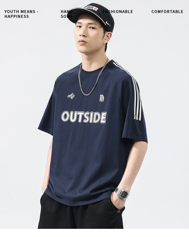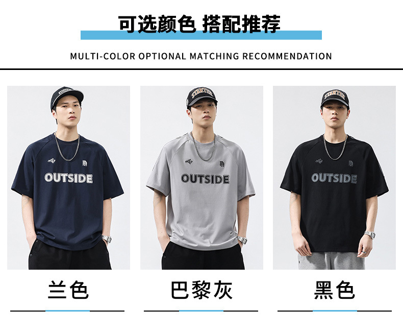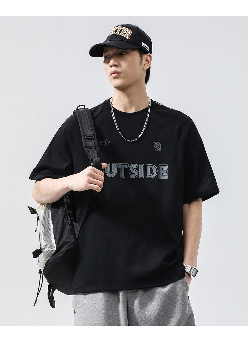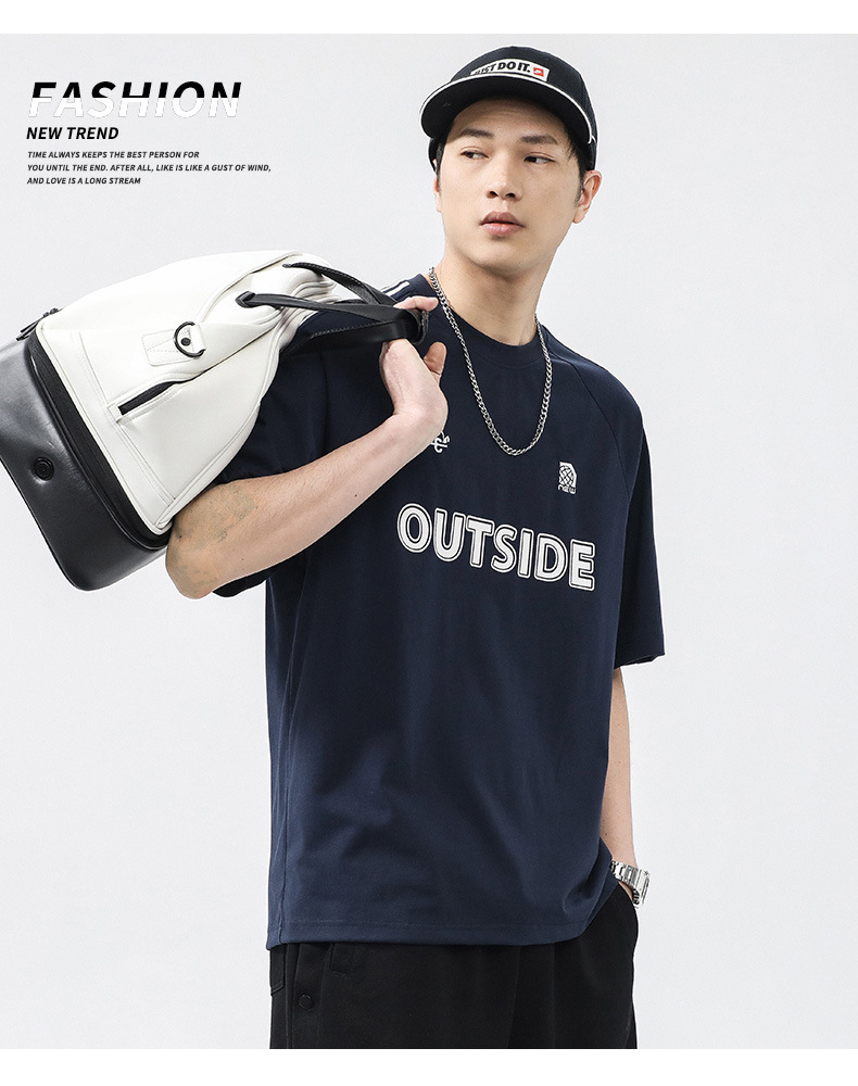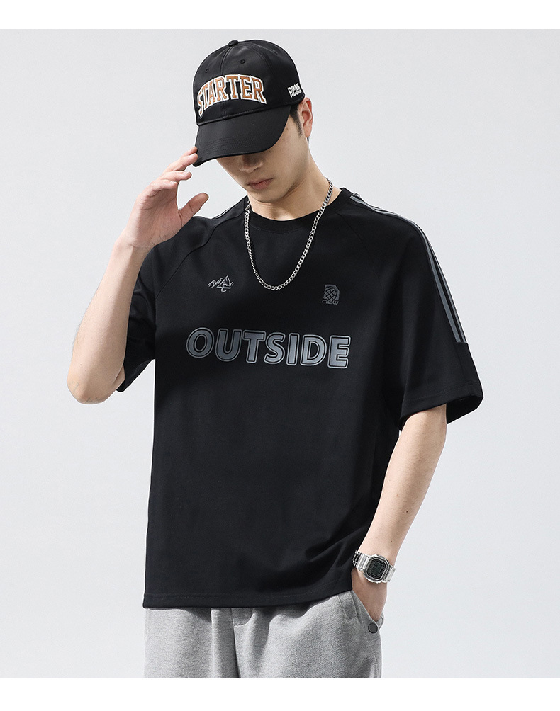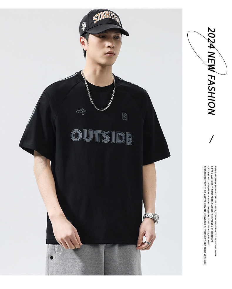 T3351 | 플러스 사이즈 남자 여름 새로운 250g 헤비 라운드 넥 티셔츠 남성용 느슨한 올 매치 레터 프린트 반팔스토어 가기