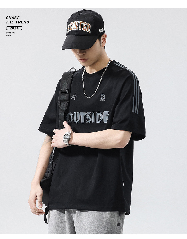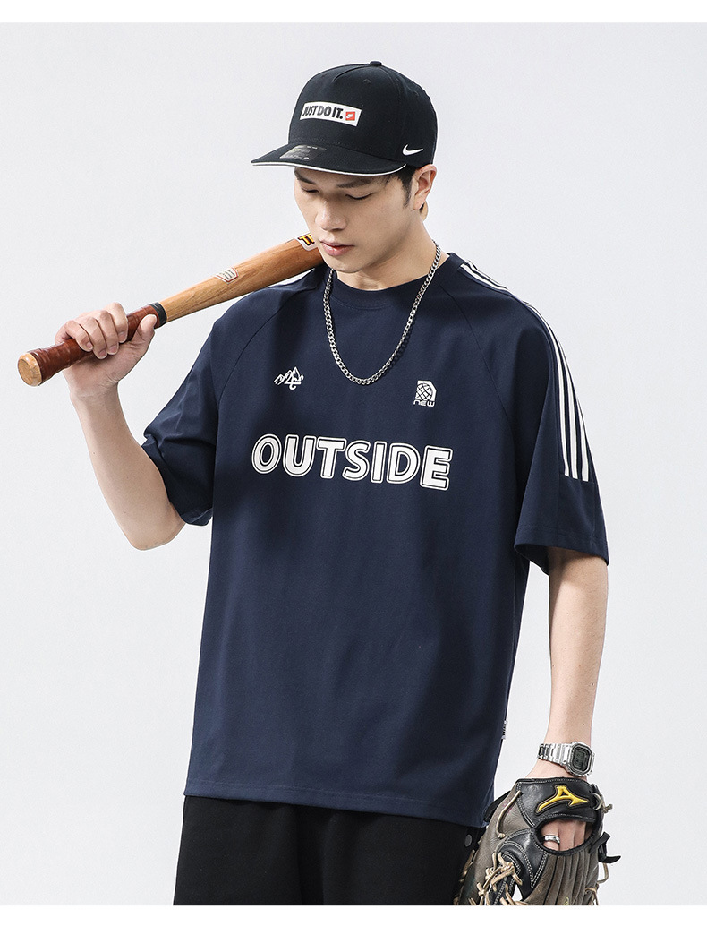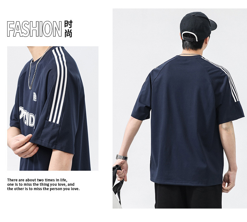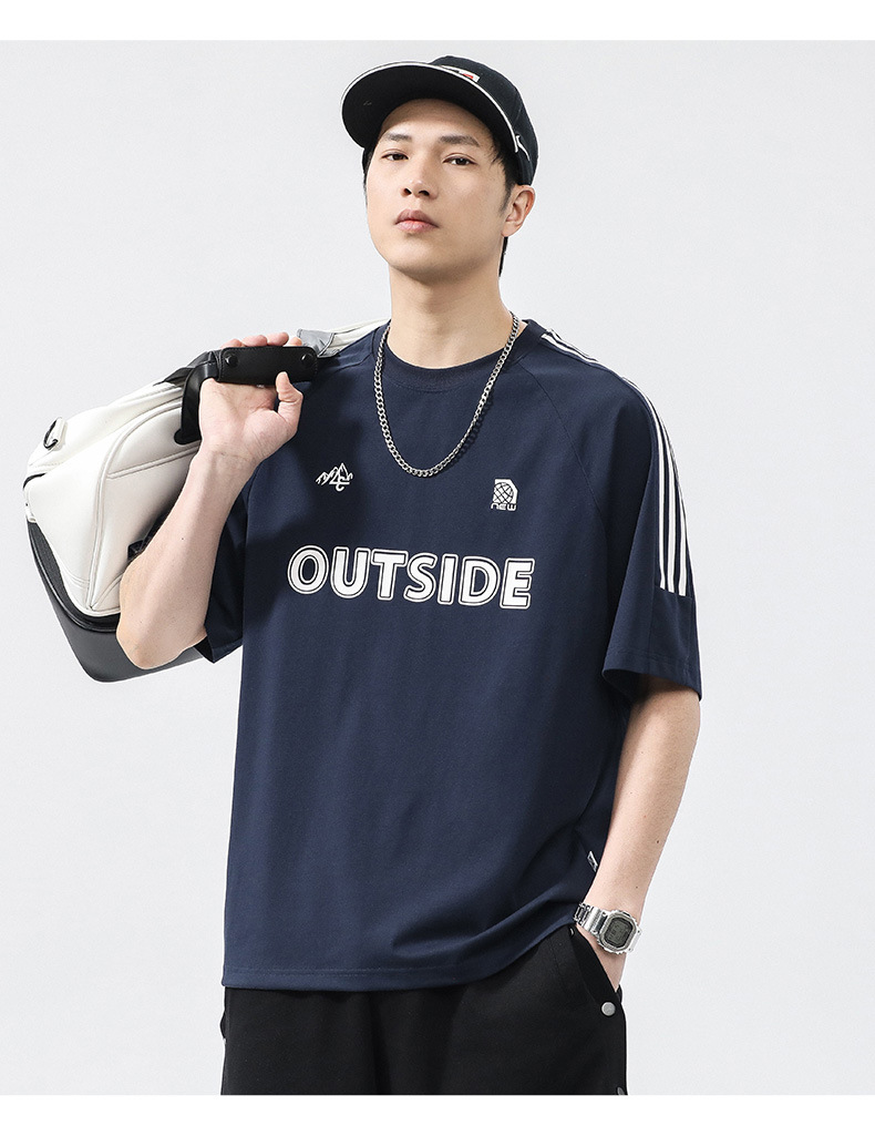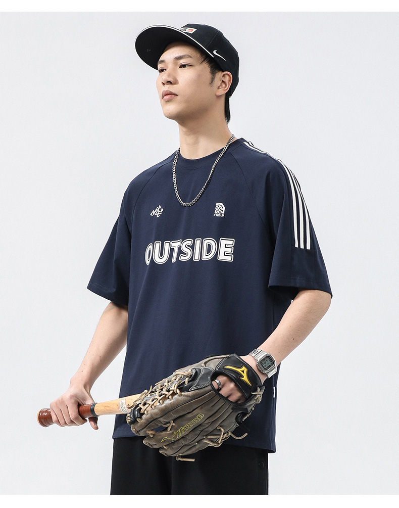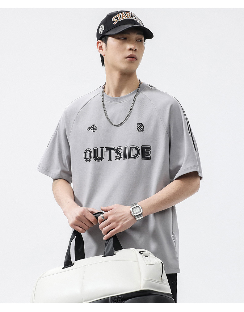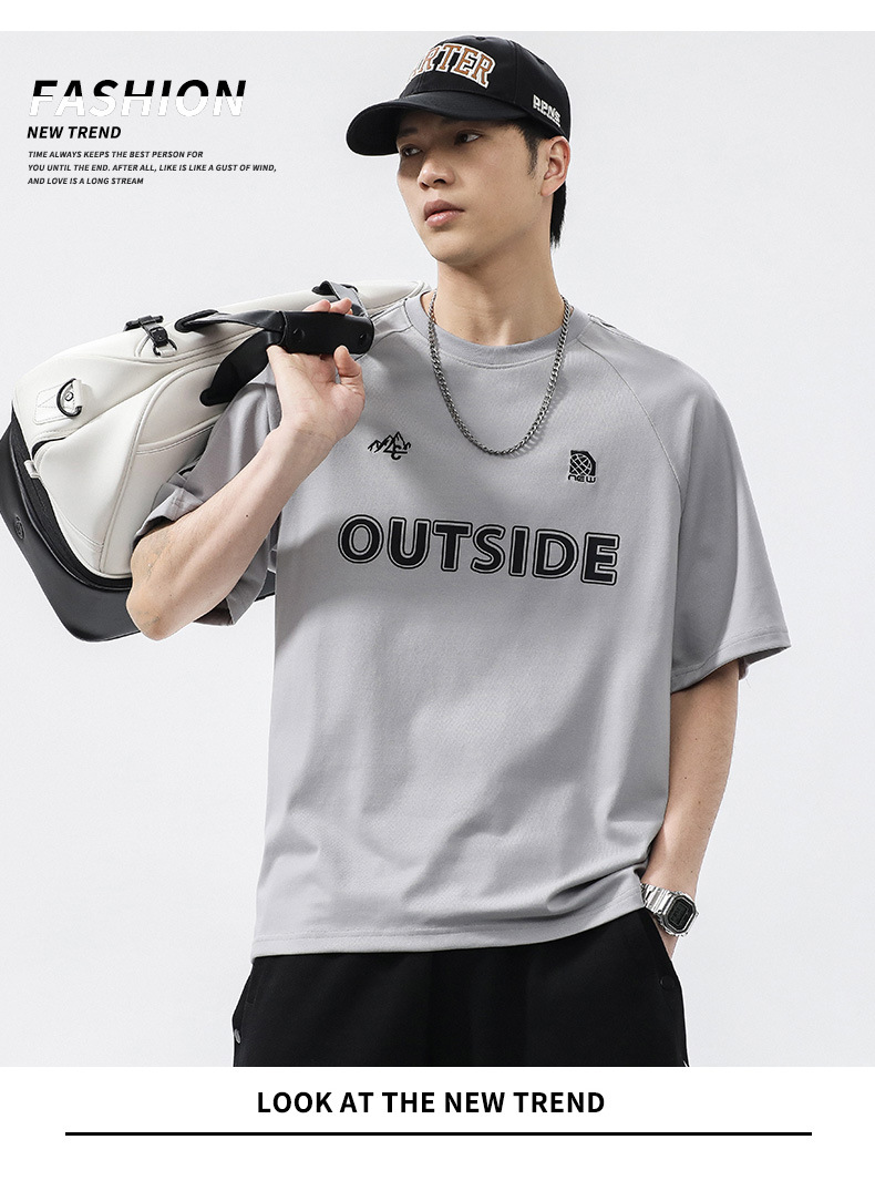 T3351 | 플러스 사이즈 남자 여름 새로운 250g 헤비 라운드 넥 티셔츠 남성용 느슨한 올 매치 레터 프린트 반팔스토어 가기