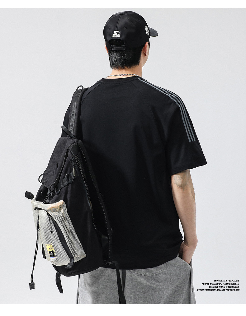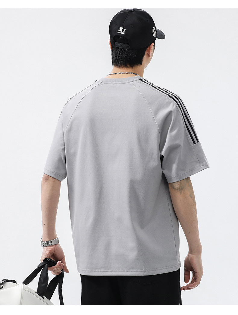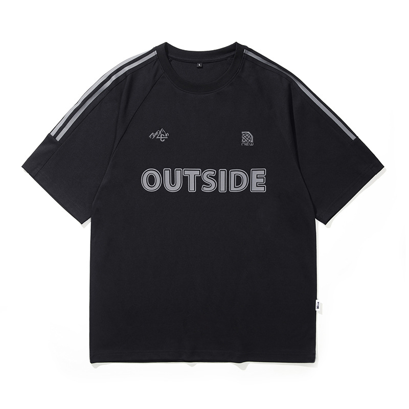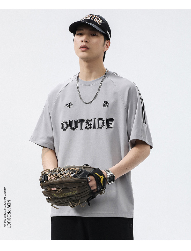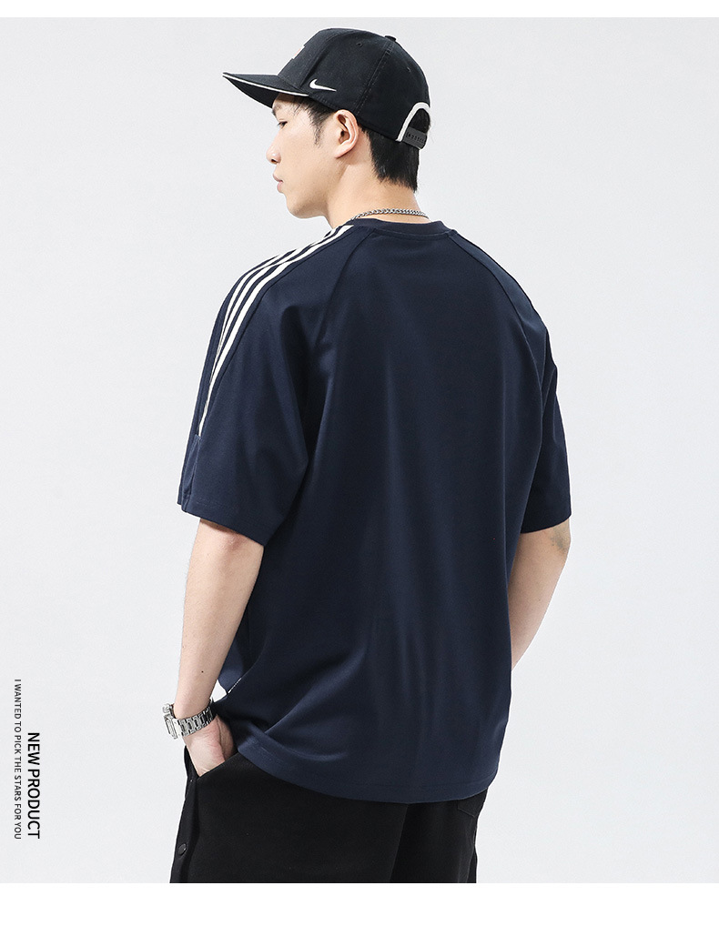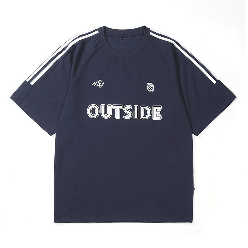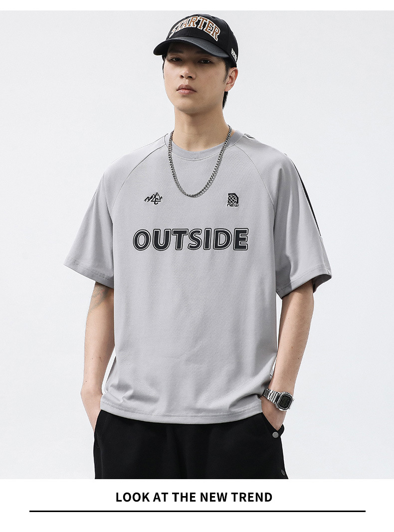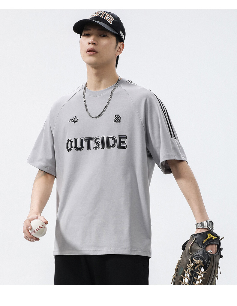 T3351 | 플러스 사이즈 남자 여름 새로운 250g 헤비 라운드 넥 티셔츠 남성용 느슨한 올 매치 레터 프린트 반팔스토어 가기