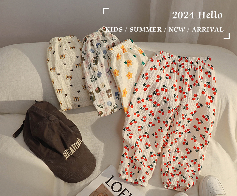 2024 아기 여름 소년 소녀 야외 모기 방지 바지 어린이 올 매치 블루머 아동용 얇은 발목 묶음 바지스토어 가기