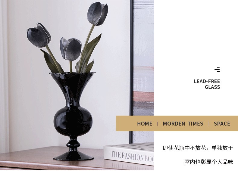 유럽 스타일의 꽃꽂이 거실 테이블 장식 중반 고대 검은 질산염 유리 꽃병 고급 인 스타일